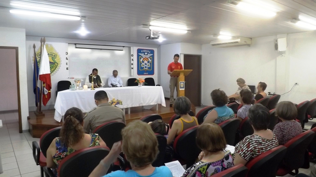 De forma a exaltar em ação de graças pelos 102 anos de existência da Corporação em nosso estado, foi realizado na manhã desta data (13) uma Celebração Eucarística na sede do 4°GB. O evento, que conta com a presença de Bombeiros-Militares, funcionários civis e integrantes do projeto Bombeiro e a Melhor Idade, ainda contou com a participação ilustre dos alunos do Curso de Formação de Socorristas, que inicia nesta data na sede do Grupamento.