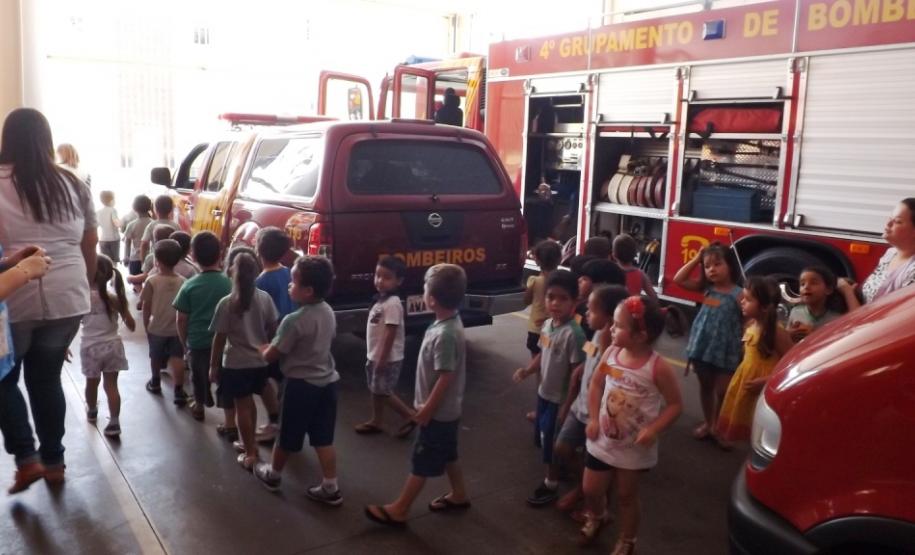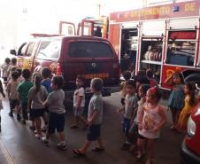 Nos dias 06 e 10 a sede do Grupamento recebeu a presença de alunos de escolas públicas para uma tarde recreativa junto aos Bombeiros Militares da guarnição de Cascavel. Durante o evento os alunos conheceram as instalações do Quartel Central, veículos e equipamentos utilizados nas atividades Bombeiro-Militar, com destaque especial para as viaturas utilizadas no combate a incêndio e atendimento pré-hospilar.