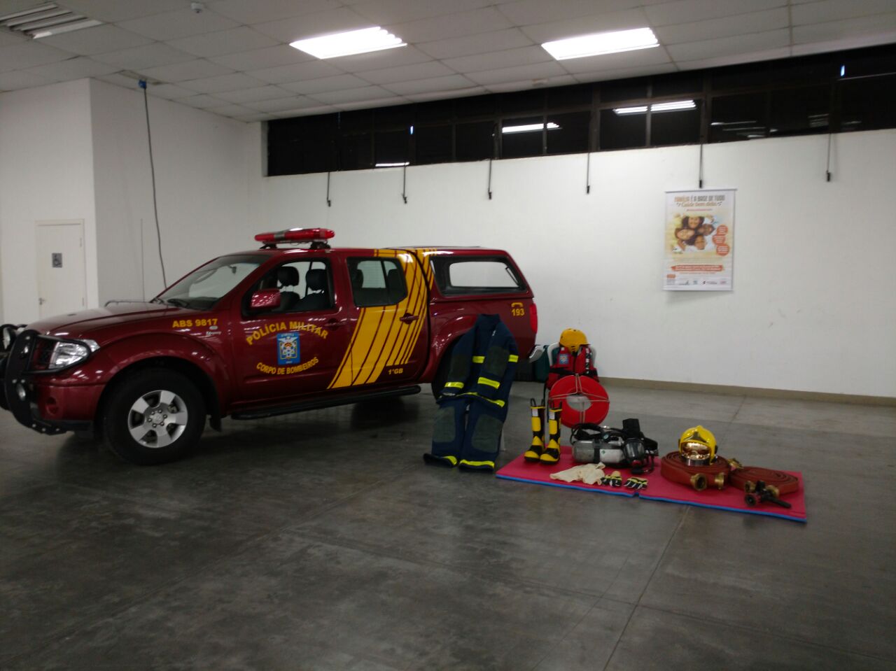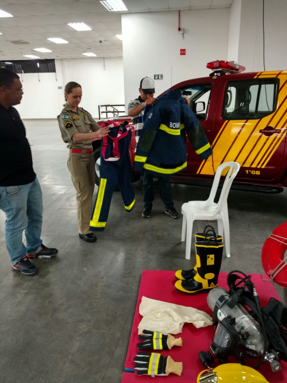 No último sábado, dia 27, o 1º Grupamento de Bombeiros realizou exposição de materiais de Primeiros Socorros e Combate a Incêndio durante o dia Nacional da Construção Civil.