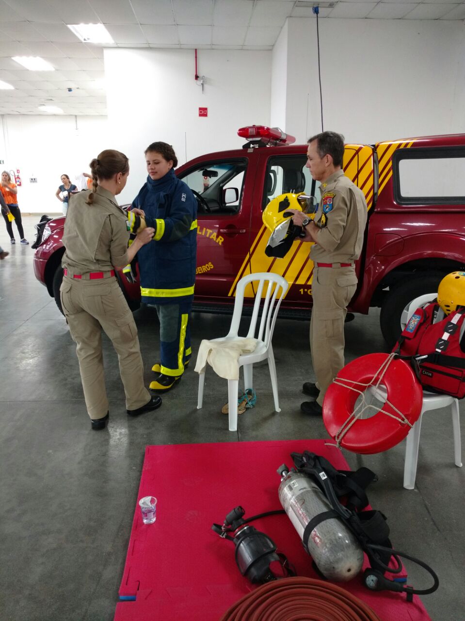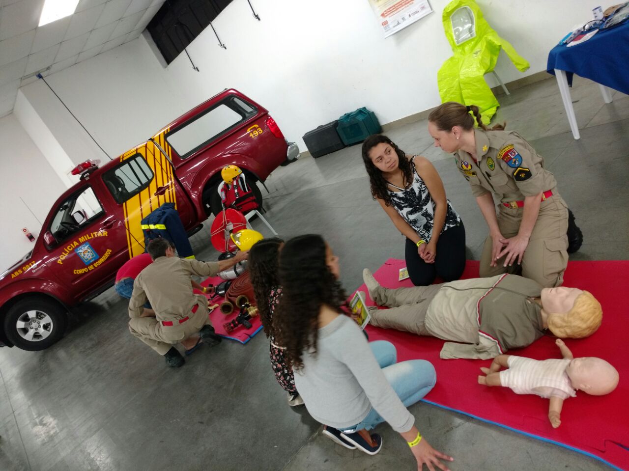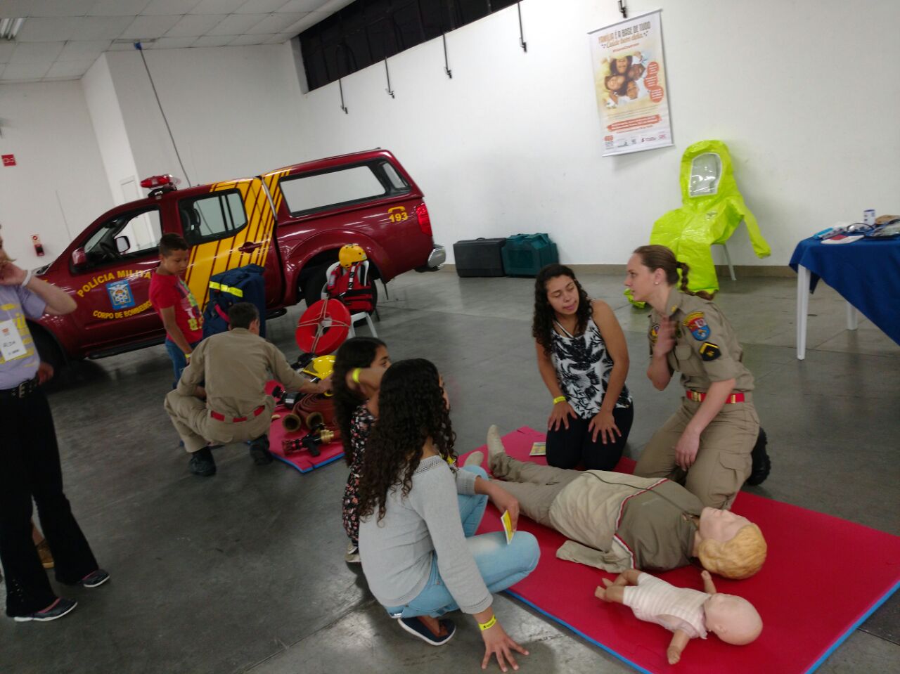 A participação teve como objetivo demonstrar alguns materiais que o bombeiro utiliza e principalmente repassar informações referentes ao primeiro atendimento a uma vítima de parada cardiorrespiratória ou ainda a um bebê com obstrução de vias aéreas, casos mais comuns em que as pessoas muitas vezes desconhecem o que deve ser feito.