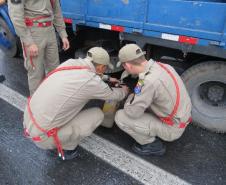 A turma do Curso de Soldados Bombeiros Militares 2013/2014 que se encontra na fase final do curso participou da fiscalização para melhorar a percepção da existência dos riscos envolvidos em atendimentos de emergência nas Rodovias Federais e Estaduais no Paraná.