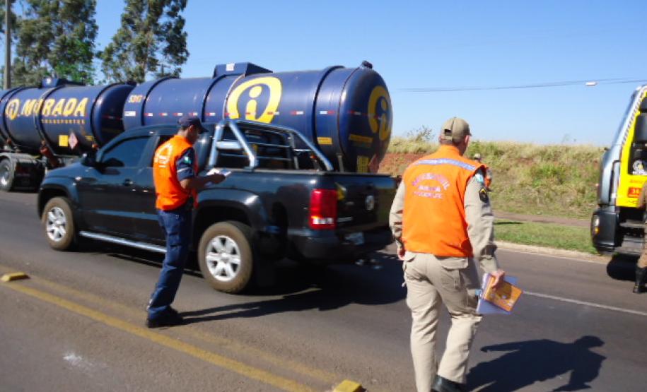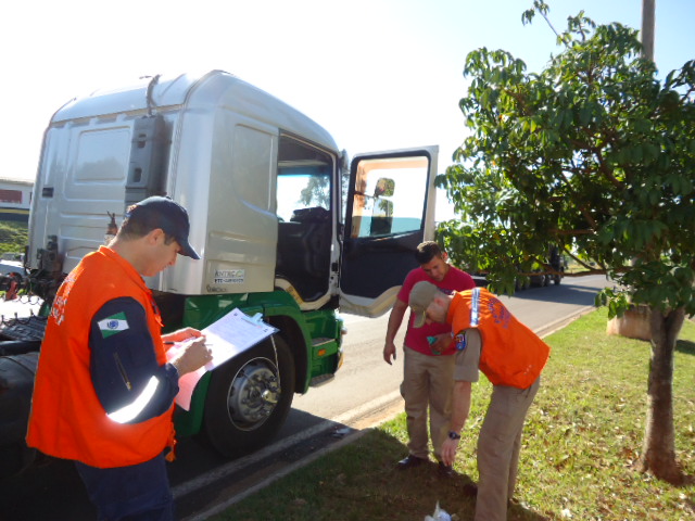 Foram fiscalizados 13 veículos, sendo constatado que 02 veículos estavam irregulares para o transporte de produtos perigosos, sendo notificados pela Polícia Rodoviária Estadual.
