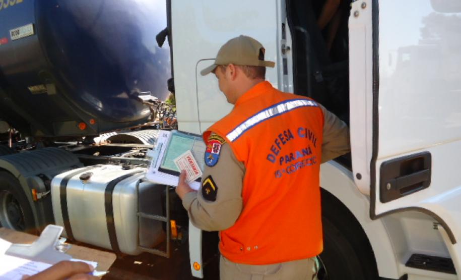 A 15ª Coordenadoria Regional de Defesa Civil – 6º Subgrupamento de Bombeiros Independente realizou no dia 10 de setembro de 2013, fiscalização ao transporte rodoviário de produtos perigosos na Rodovia PR 323, Km 286, município de Cruzeiro do Oeste, Posto do BPRV, conforme cronograma anual de Fiscalização de Produtos Perigosos .