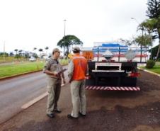 Na manhã do dia 23 de abril, a 4ª CORPDEC de Toledo, em conjunto com a Policia Rodoviária, com a Policia Ambiental e com a ADAPAR, fiscalizaram o transporte de cargas com produtos perigosos na Rodovia PR 486 Km 54, no Posto da Polícia Rodoviária Estadual de Assis Chateaubriand, PR.