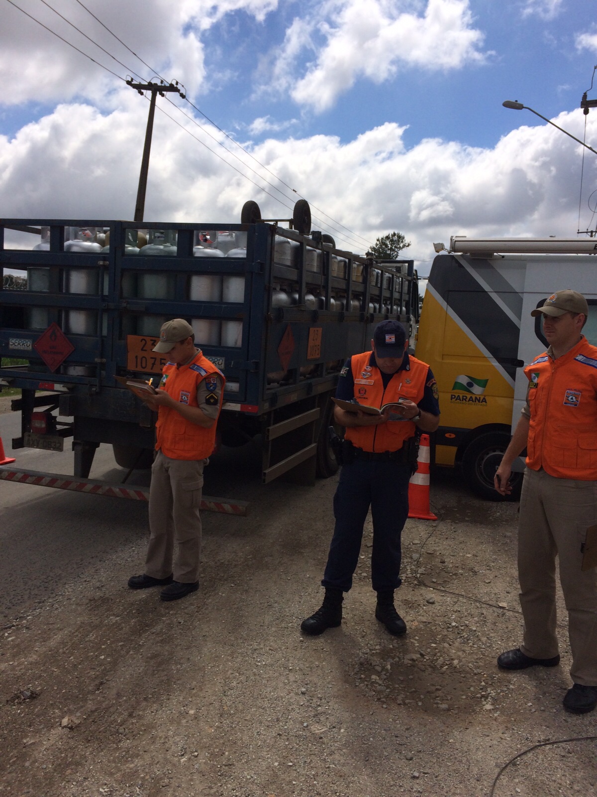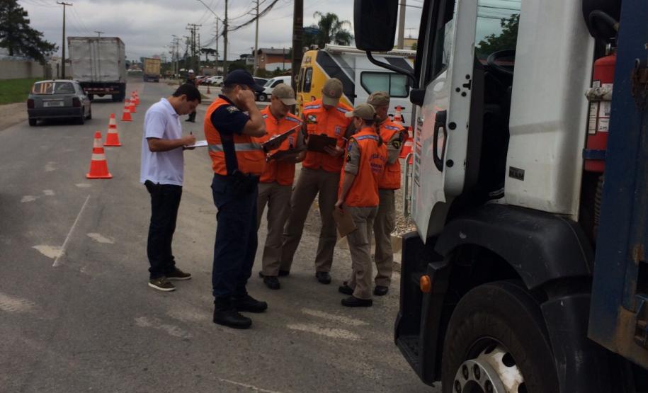 Além do Corpo de Bombeiros e 1ª Coordenadoria Regional de Proteção e Defesa Civil, a fiscalização contou com o apoio do BPTran, SEFA, COMPDEC e Polícia Civil, sendo realizada na Rua José Rodrigues Pinheiro, bairro Cidade Industrial de Curitiba.