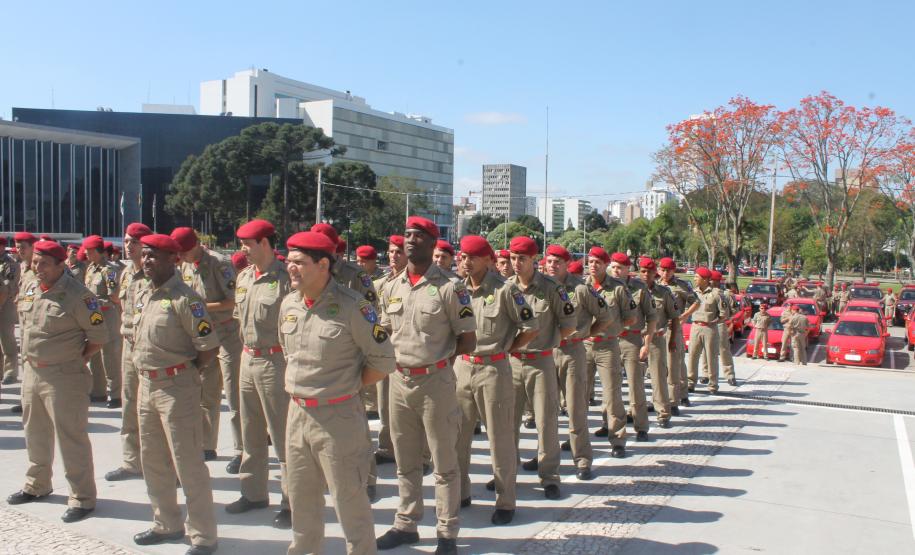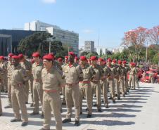 Durante uma grande formatura militar, o aniversário de 100 anos do Corpo de Bombeiros do Paraná foi comemorado. O evento aconteceu na manhã desta segunda-feira (8), no Palácio Iguaçu.