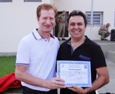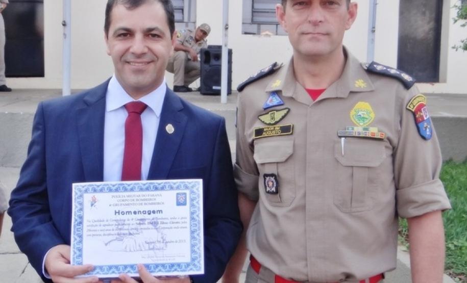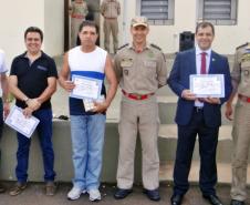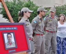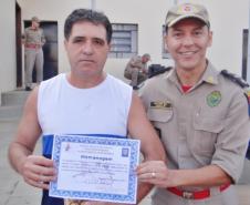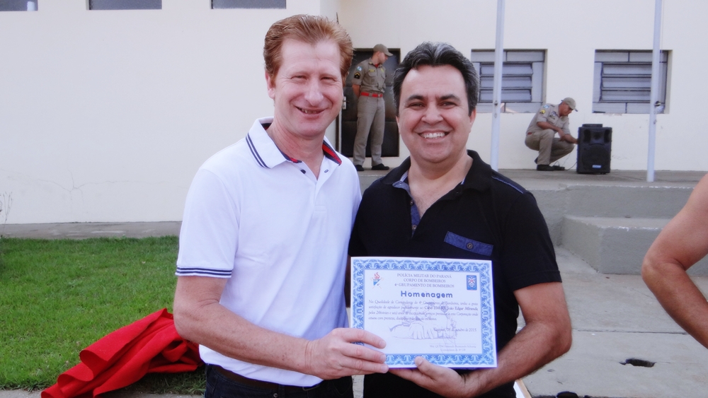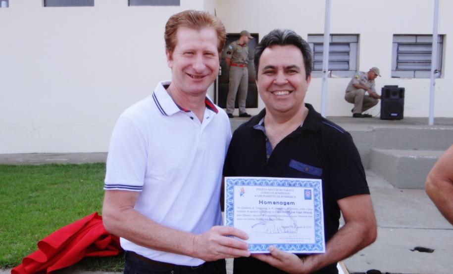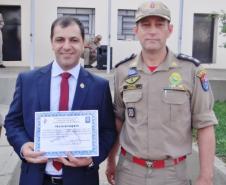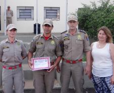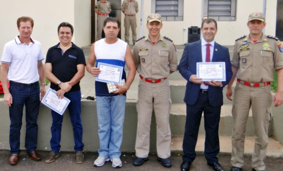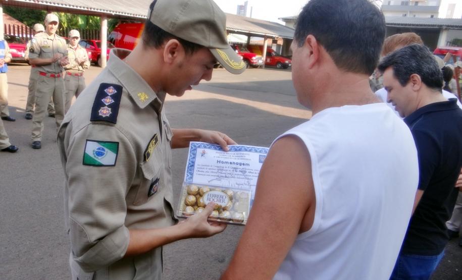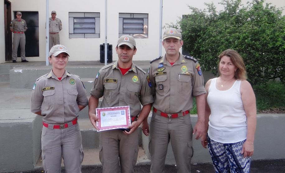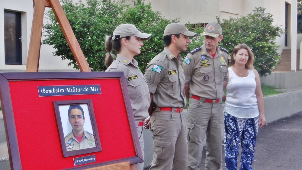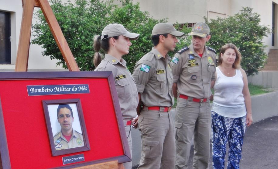 Durante a solenidade foi realizada a entrega de uma homenagem ao Bombeiro do mês, o Soldado Franciney Rodrigues, em reconhecimento ao esforço em prol da Corporação, especialmente no último mês, com a organização do I Eco Triathlon, evento realizado no último fim de semana, com repercussão em todo estado.