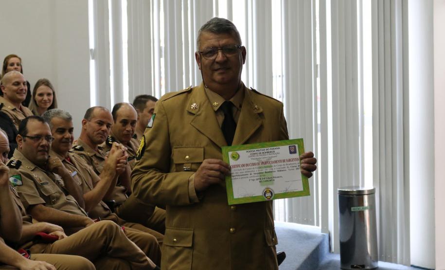 Na manhã desta sexta-feira (1º), foi realizada no auditório do Centro de Formação dos Profissionais da Educação de Pinhais, a Formatura do Curso de Aperfeiçoamento de Sargentos, turma 2017. O ato solene foi presidido pelo Coronel Fábio Mariano de Oliveira, Comandante do Corpo de Bombeiros.