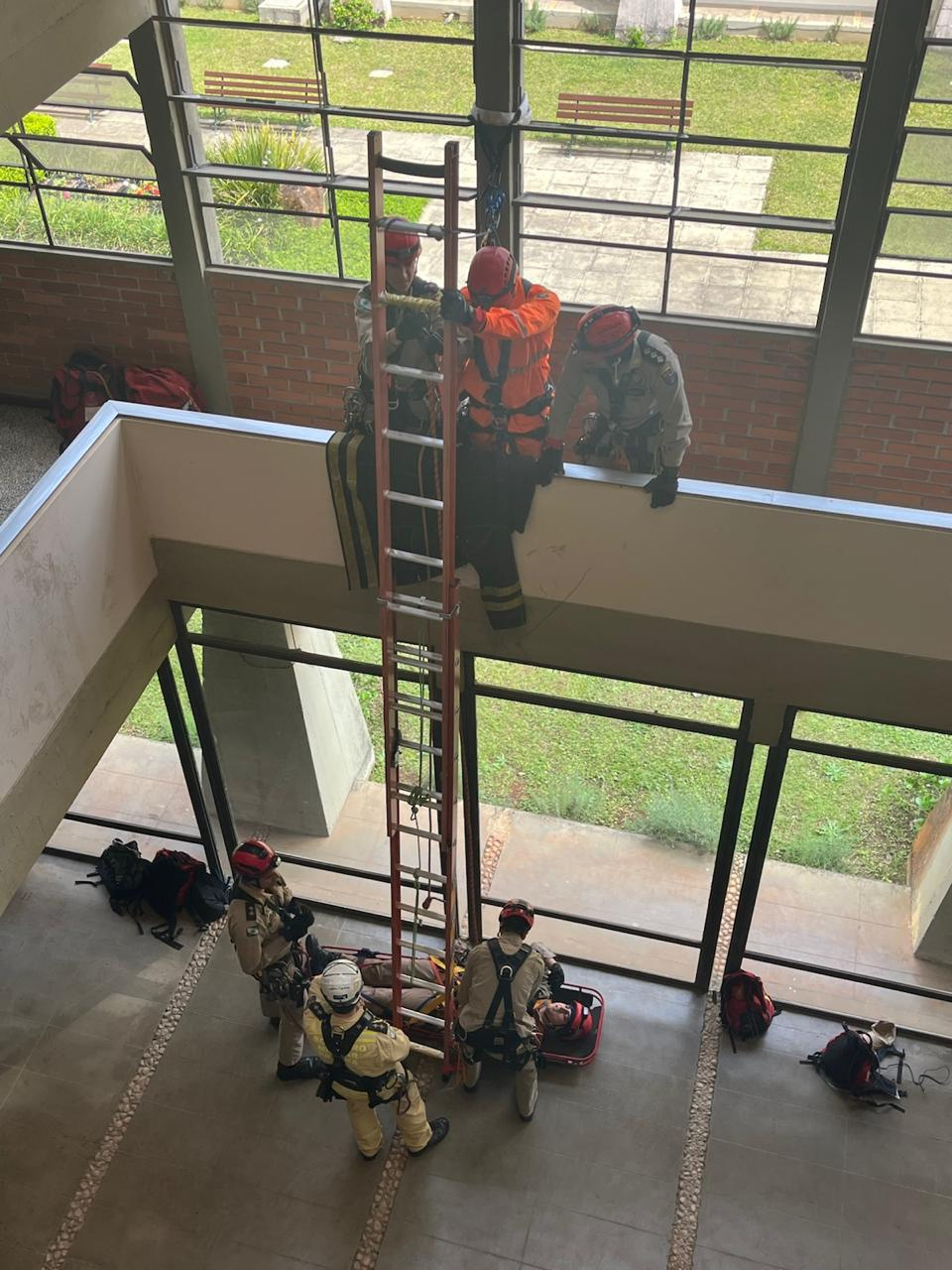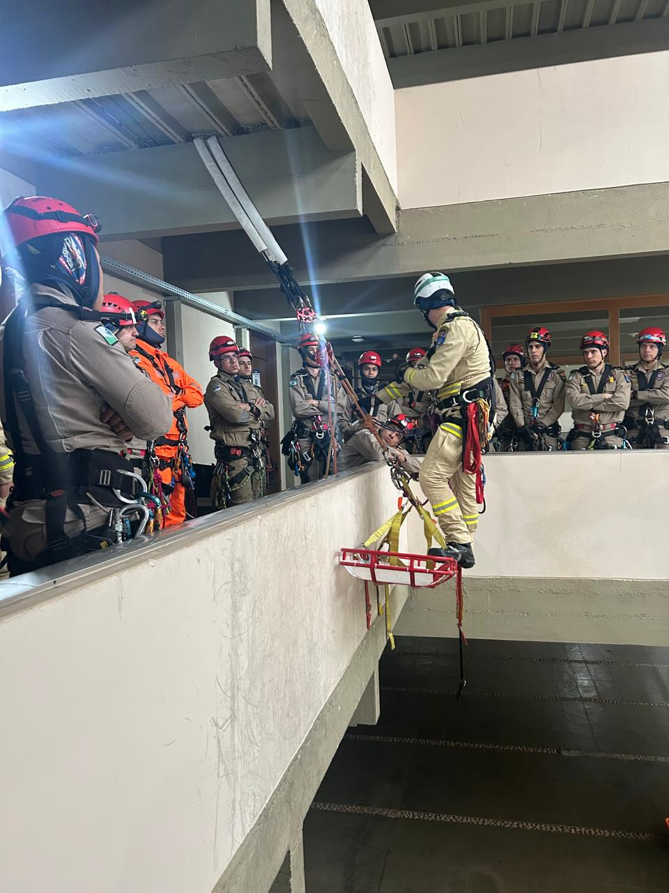 A especialização é vital diante de ocorrências que demandam precisão e segurança. O coordenador do curso, Major QOBM Genuino Luiz Dalponte, exemplifica com um resgate desafiador: “Em 2024, uma profissional de limpeza ficou presa em seu equipamento de segurança a 25 metros de altura na fachada de um edifício da Justiça Federal, em Curitiba. Nossas equipes realizaram o resgate pelo topo do prédio, utilizando técnicas de descensão controlada (rapel) para abordar e içar a vítima com segurança.”.