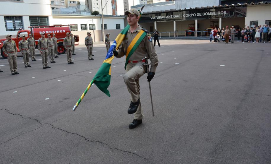 O momento solene de juramento à Bandeira Nacional foi acompanhado de muita emoção pelos formados e familiares. De forma simbólica, foi realizada a entrega dos equipamentos de proteção individual que passarão a fazer parte da rotina dos bombeiros durante suas atividades operacionais.