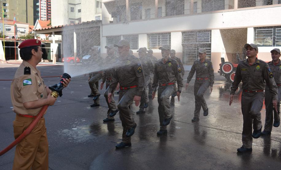Após as falas do Coronel Fábio Mariano de Oliveira, Comandante do Corpo de Bombeiros, do Coronel Arildo Luís Dias, Subcomandante Geral da PMPR e do Coronel MaurícioTortato, Secretário Chefe da Casa Militar, os formandos fizeram o tradicional “Fora de Forma”, entoando a Canção Soldado do Fogo e recebendo o merecido “banho de batismo”.