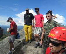 Ana Paula do Nascimento (26) e Marcela Teixeira (15) sofreram um entorse no joelho após queda em uma escada próxima ao cume do morro, que auxilia os montanhistas na descida da trilha,.