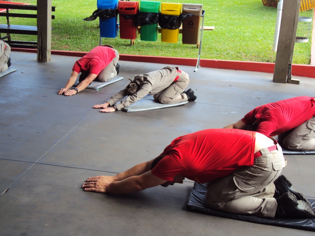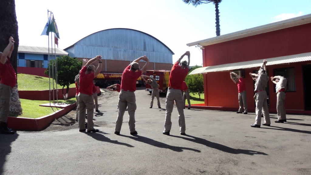 A Ginástica Laboral é realizada diariamente no período matutino, sendo conduzida por Bombeiros com formação acadêmica em Educação Física.
