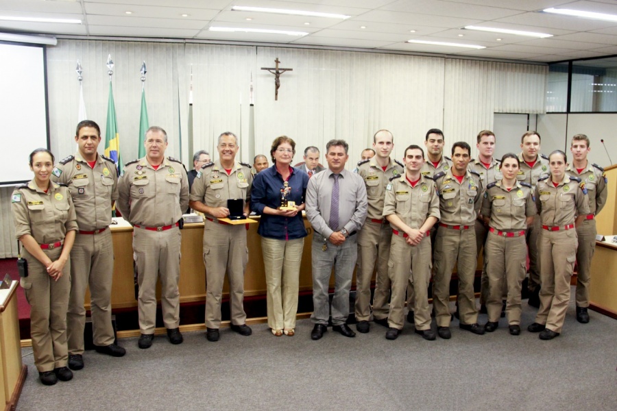 Nesta terça-feira (29/09) o 7º Grupamento do Corpo de Bombeiros da Polícia Militar do Paraná (PMPR) recebeu uma homenagem na Câmara Municipal de Colombo, na Região metropolitana de Curitiba (RMC), em alusão aos 161 anos da corporação comemorados no mês de agosto. No evento, o Comandante do 7º GB, tenente-coronel Ricardo Silva, recebeu uma lembrança das mãos da Prefeita do município, Beti Pavin.