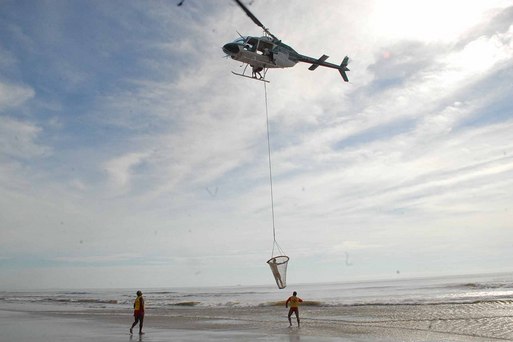O resgate aéreo pode ser feito pelo “puçá”, rede utilizada para retirar vítimas do mar, ou também diretamente pelo guarda-vidas que pula na água e é auxiliado por um barco. “Nesta temporada foram feitos dois resgates com a ajuda da aeronave. Em um deles, uma criança estava sozinha, depois da arrebentação das ondas. Ela foi vista pela equipe do helicóptero e imediatamente o guarda-vidas pulou na água”, afirmou o comandante da aeronave, Eugênio Celso Vaz de Mello.