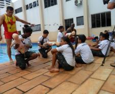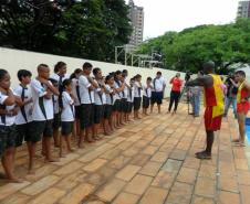 A sede do 5º Grupamento de Bombeiros (5ºGB) de Maringá (PR), noroeste do estado, recebeu na tarde da última segunda-feira (24/11), os 30 alunos do projeto “Guardiões da Natureza”, iniciativa desenvolvida pelo Batalhão de Polícia Ambiental (BPMA), que participaram de instruções de salvamento em piscina, medidas de primeiros socorros e combate a incêndios. Estas instruções foram ministradas pelos Sargentos Castilho e Vladimir.