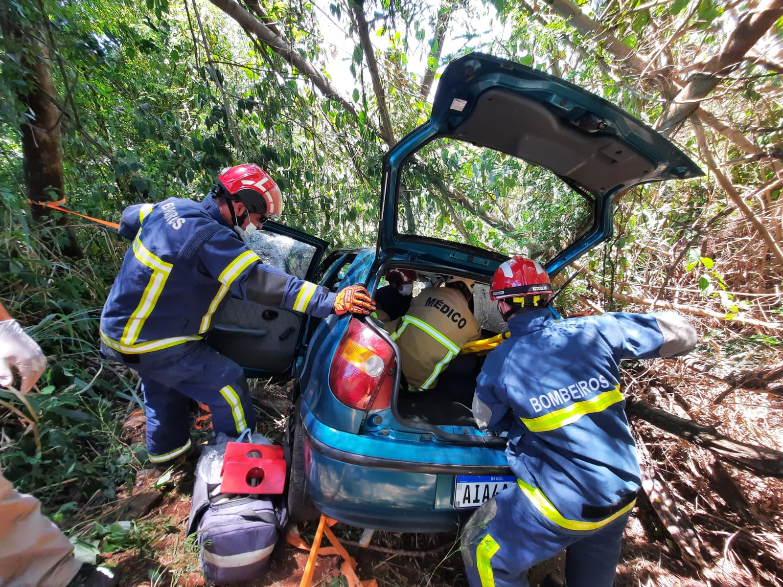Ao avaliarem a cena, os bombeiros militares verificaram que um Fiat Palio caiu pela ribanceira às margens da rodovia, estando o condutor ferido dentro do automóvel. Para auxiliá-los no atendimento, foram acionados de Campo Mourão um caminhão de resgate (viatura ABTR) e uma ambulância. O Samu Norte Novo (Maringá) enviou o suporte aeromédico (helicóptero Saúde 10) para prestar o suporte avançado de vida. A Polícia Rodoviária Estadual também contribuiu no atendimento e sinalização da via.