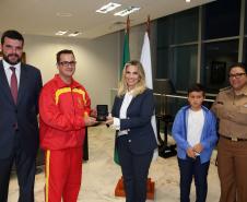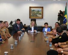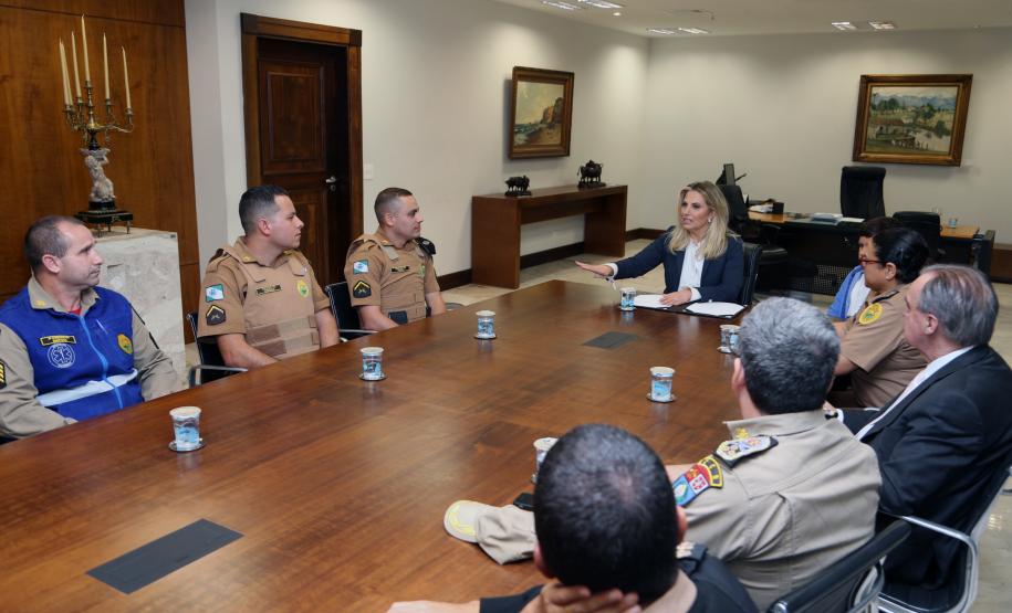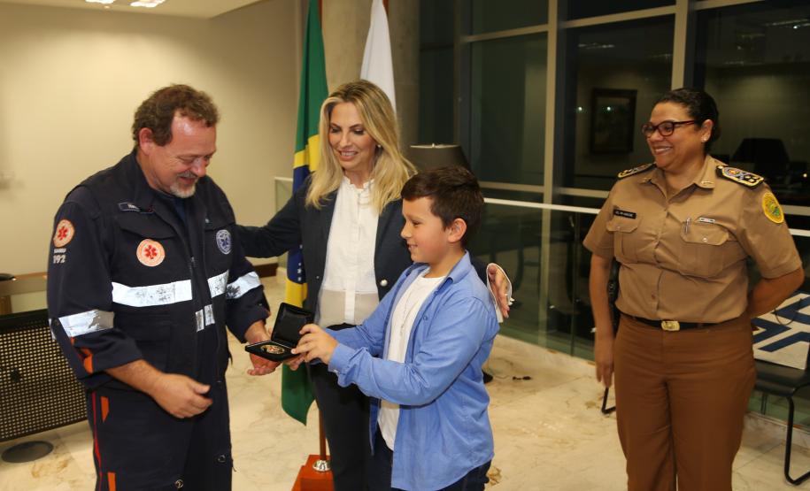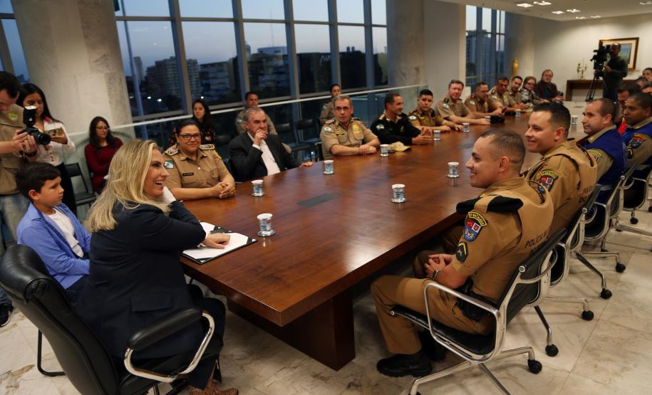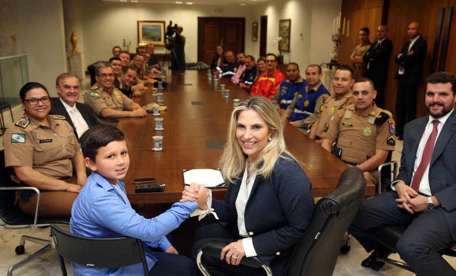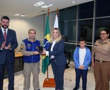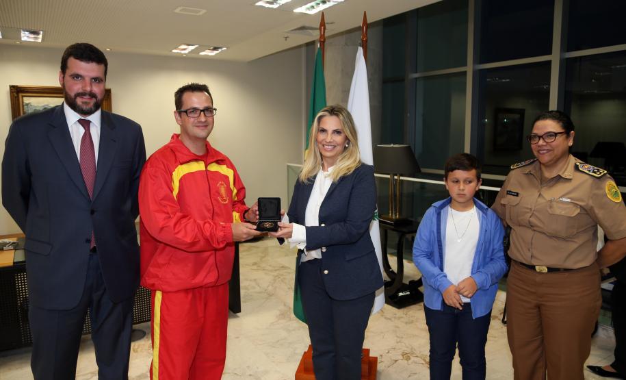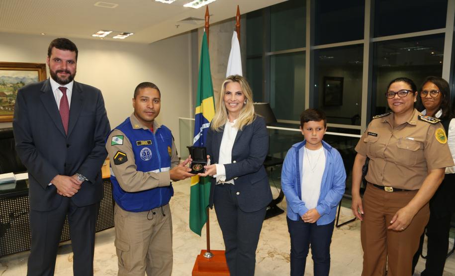 O Governo do Paraná homenageou nesta segunda-feira (25), no Palácio Iguaçu, a equipe formada por bombeiros socorristas e por equipe médica do SIATE , que salvou a vida do cabo Gulhinski, da Polícia Militar, baleado por criminosos, no dia 10 de junho, perto da Rodoviária de Curitiba ao abordar um carro ocupado por criminosos, que trafegava na contramão.