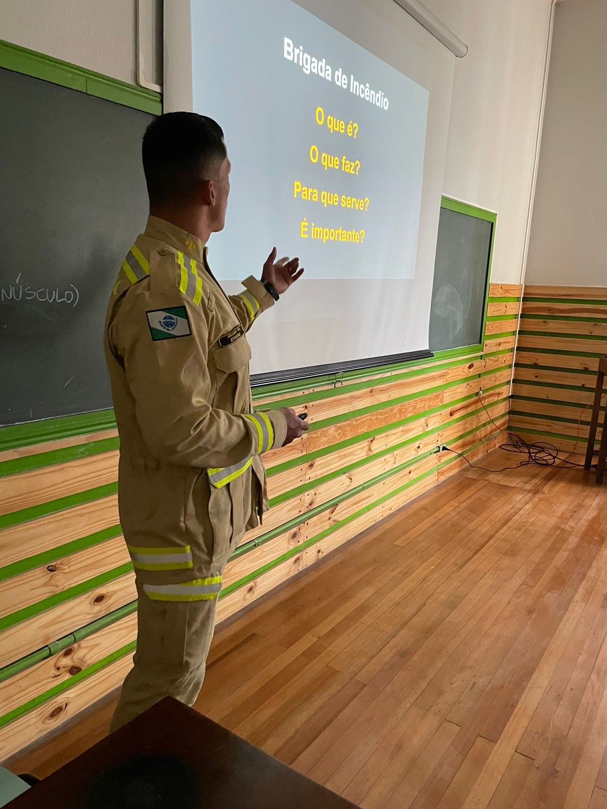 Sobre brigada de incêndio foi verificada normatização vigente, demonstrado a importância da brigada com estudos acadêmicos sobre o comportamento humano em situações de emergência, feito também atividades práticas com dimensionamento de brigada.