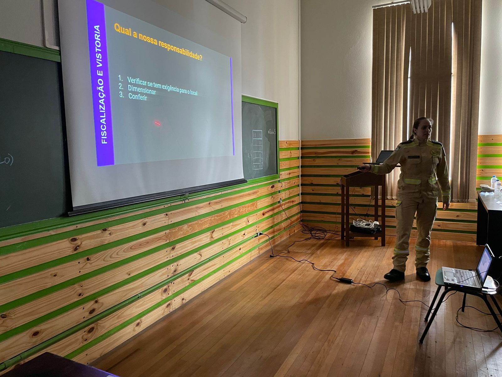 O 7° Grupamento de Bombeiros realizou instrução para os bombeiros que atuam no setor de prevenção com a intenção de atualizarem os militares quanto a aplicação da Norma de Procedimento Técnico de Brigada de Incêndio.