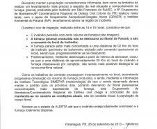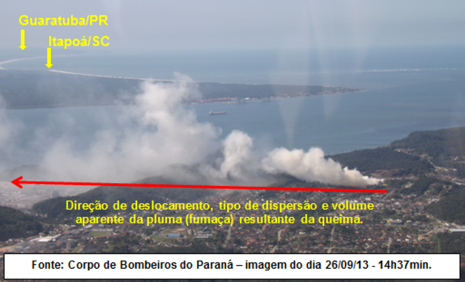 - A fumaça (pluma) produzida não se deslocava ao litoral de Paraná, e sim a noroeste do local do incêndio;