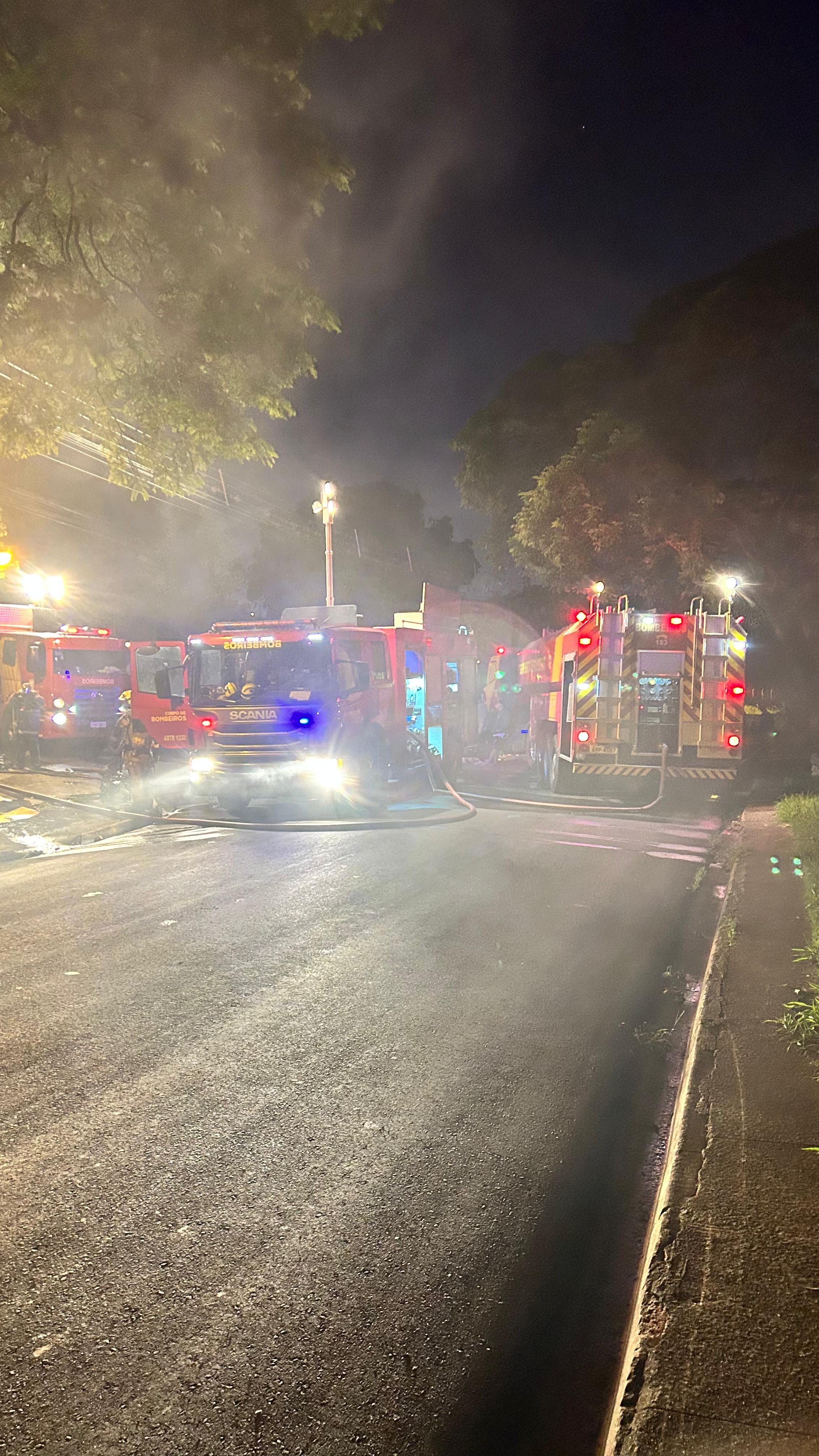 Quartel Central do 5ºGB em Maringá/PR (07/11/2023) - O Corpo de Bombeiros Militar foi acionado em torno da 01h40min desta terça-feira (07) para atendimento de incêndio em um uma residência na Rua Paisagística, nº 196, no Parque das Laranjeiras em Maringá. Além das chamas, a central foi informada da potencial presença de ocupantes no imóvel.