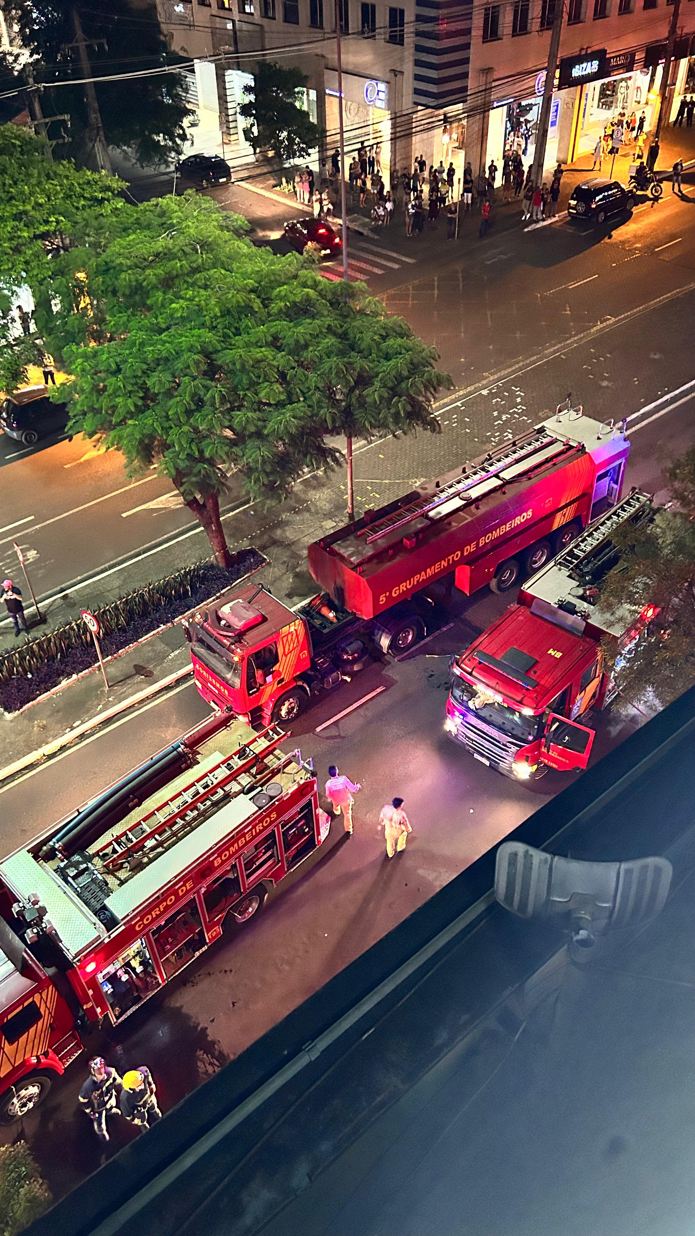 Com base no relato dos telefonemas e correlacionando-se com o porte da edificação e possibilidade de vítimas no local, imediatamente foram despachados três caminhões de combate a incêndio e resgate (ABTR), uma viatura tipo caminhão-tanque (CT), uma viatura com plataforma mecânica (APM), duas ambulâncias e uma caminhonete de salvamento. Além disso, o Samu enviou uma ambulância de suporte avançado e um veículo de intervenção rápida (caminhonete com suporte avançado).