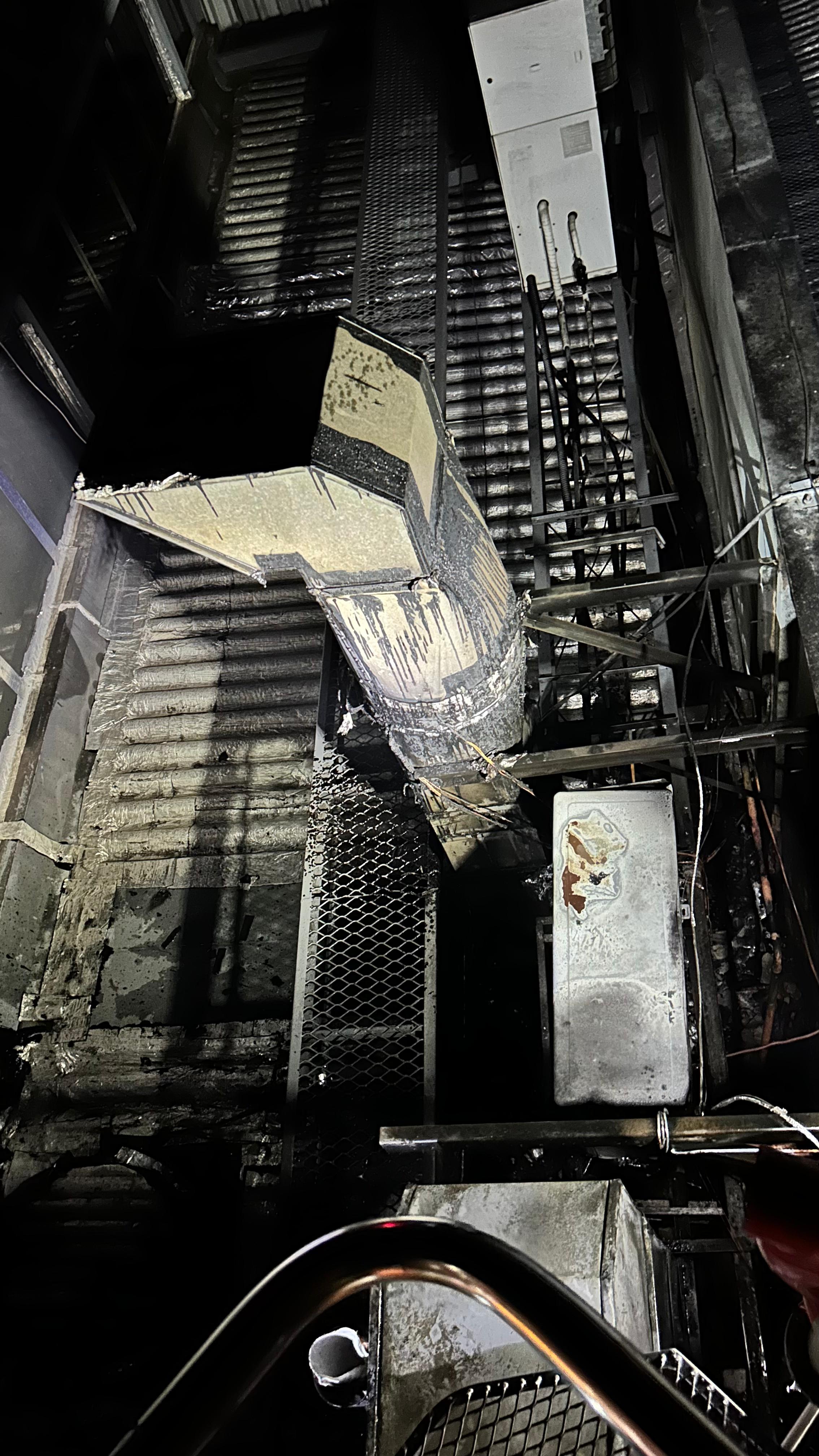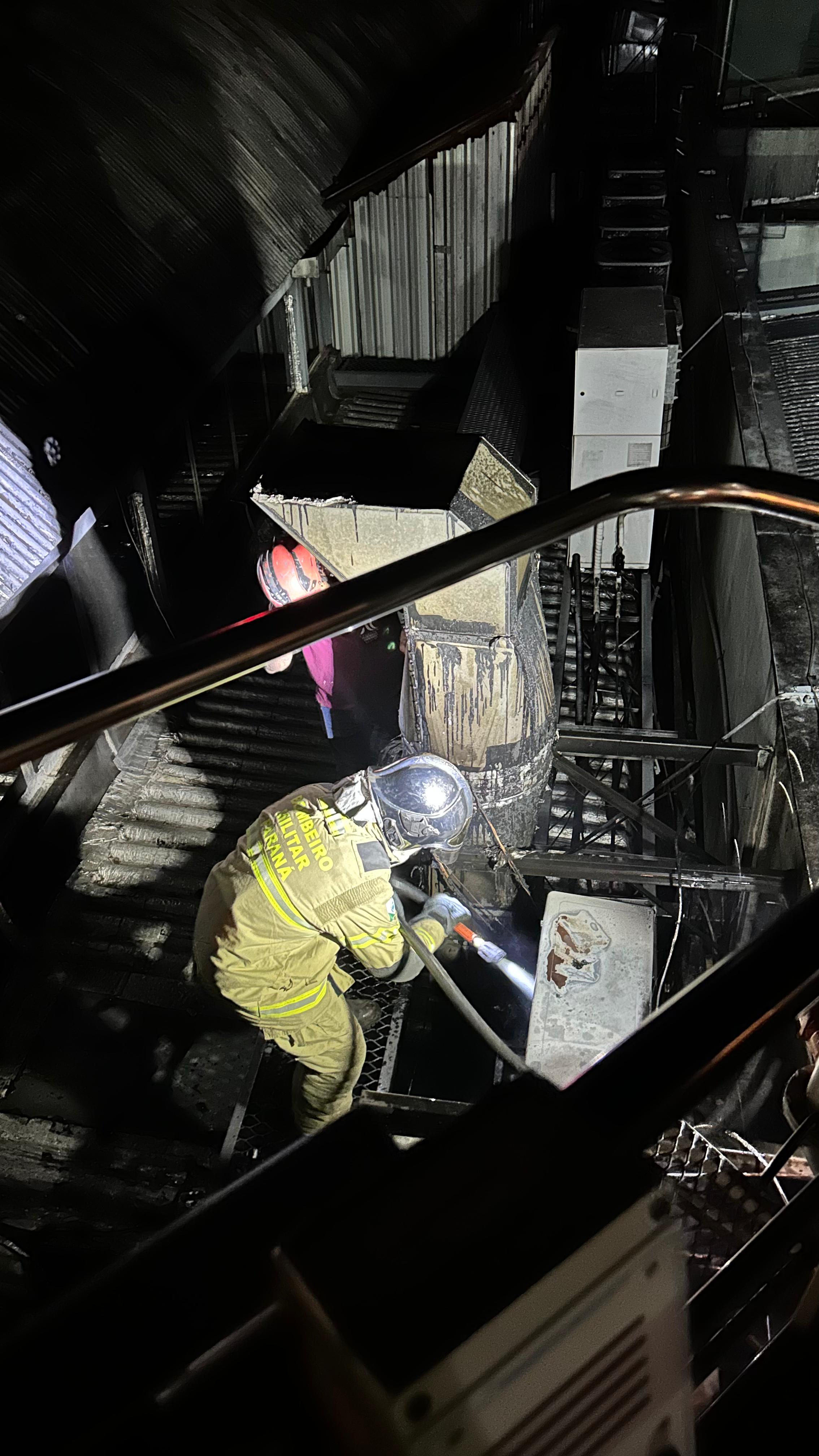 No local, as guarnições depararam-se com o incêndio confinado em uma das lojas no piso superior. Ao progredirem para localizar o foco das chamas, verificaram tratar-se de mezanino de uma loja onde funcionava uma cozinha. Inicialmente foi realizada a tentativa de combate utilizando o sistema de hidrantes da edificação, contudo foi necessário realizar o combate diretamente das bombas de incêndio dos caminhões do Corpo de Bombeiros assim como da água transportada pelas próprias viaturas.