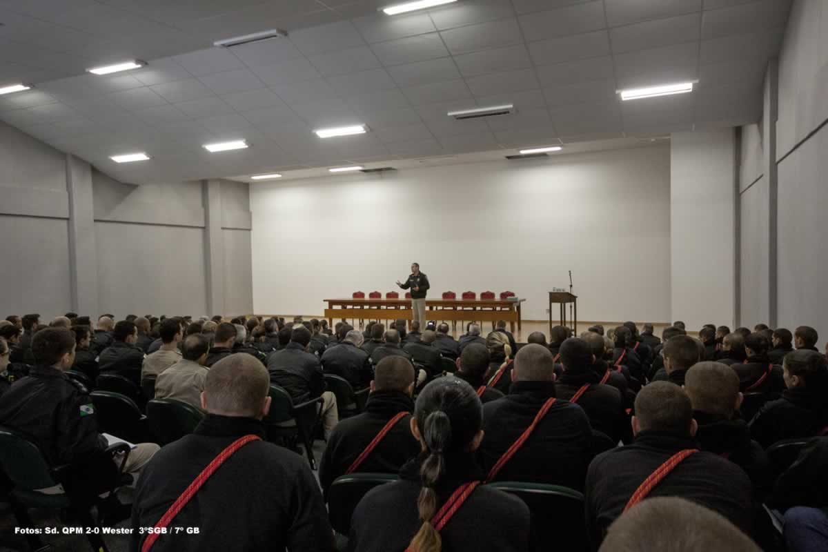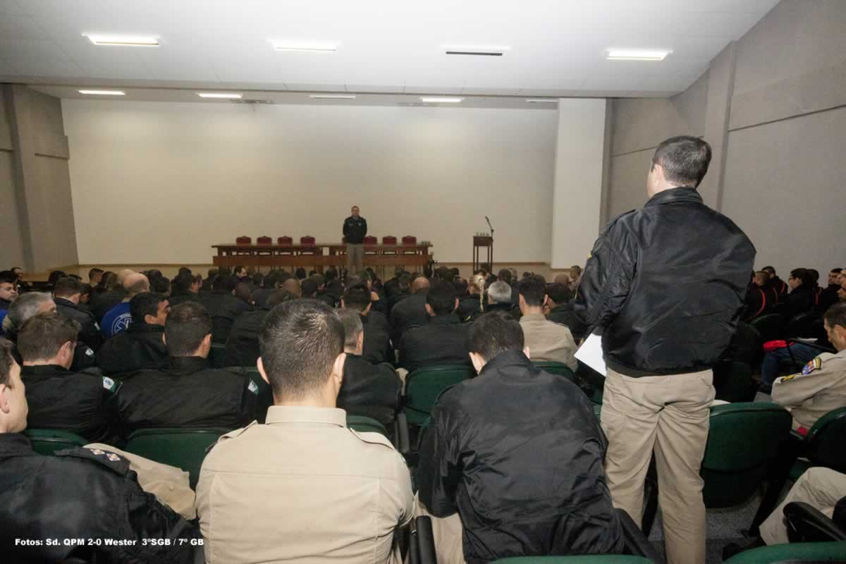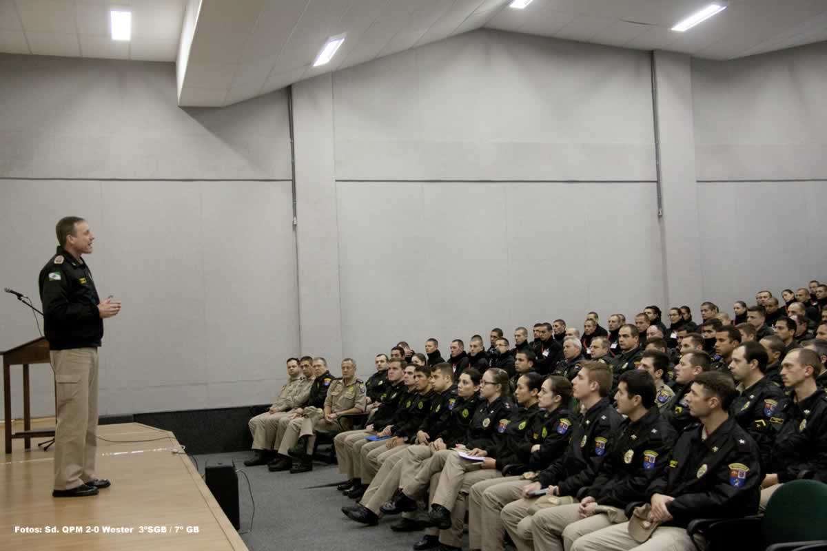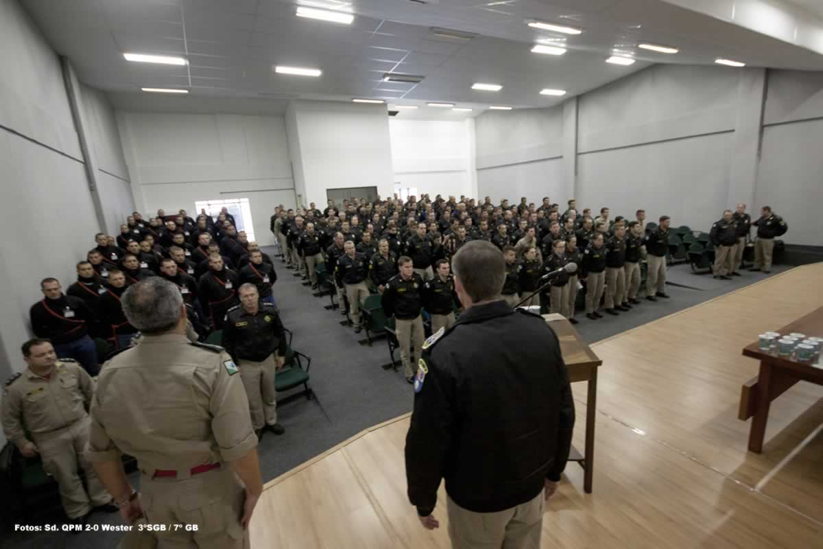 Na ocasião o Cel. Simiano conversou com todo o efetivo do 7º GB, Oficiais, Praças e Alunos Soldados , abordando assuntos como: necessidade de cursos, efetivo, e situação do Corpo de Bombeiros como um todo.