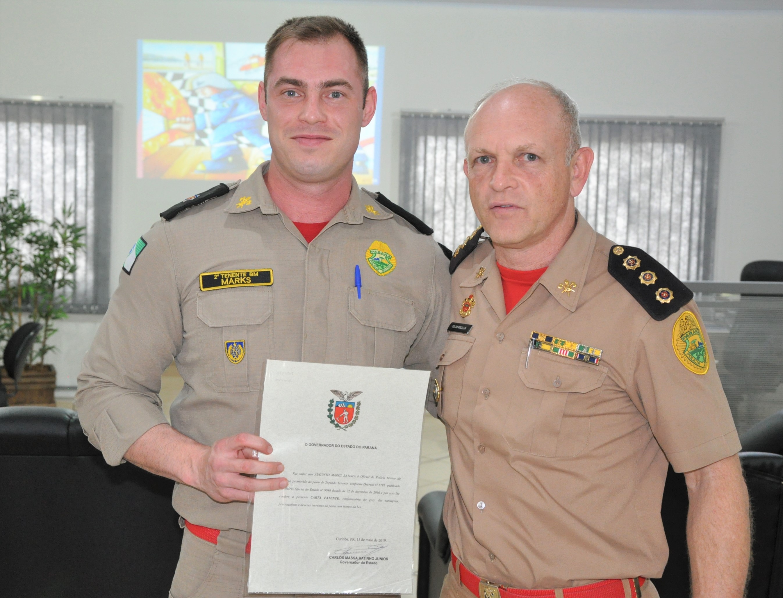 Na ocasião, foi realizada, também, a entrega da Carta Patente aos majores André Lopes e Callegari, e aos 2º Tenentes Marks e Ana Paula. Tal documento é concedido aos militares informando sua situação hierárquica e o corpo ou quadro a que pertencem, a fim de que fazer prova dos direitos e deveres assegurados por lei ao possuidor.