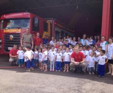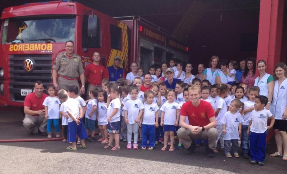 Ainda durante a semana passada, a 2ª Seção de Bombeiros (2ª SB) recebeu em suas dependências uma visita de alunos e professores do Centro Municipal de Educação Infantil Raio de Sol (49 crianças com 3 a 4 anos de idade) pertencentes ao Município de Cruzeiro do Iguaçu.