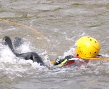Em busca da excelência na prestação de serviços à comunidade do litoral paranaense, bombeiros de Antonina participaram, na manhã desta terça-feira dia 14 de abril de 2015, de uma instrução prática de salvamento em águas rápidas no canal de fuga da Usina Parigot de Souza, no rio Capivari, localidade de Bairro Alto, município de Antonina/PR.