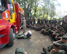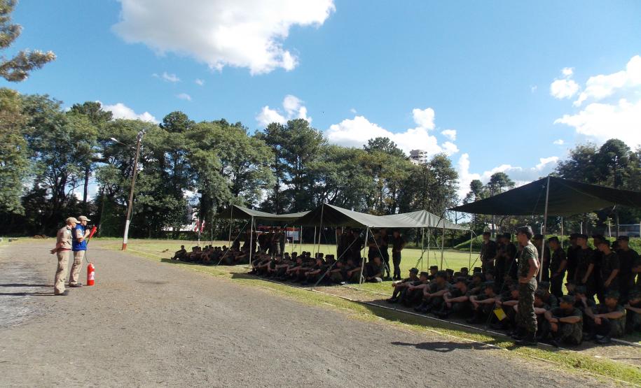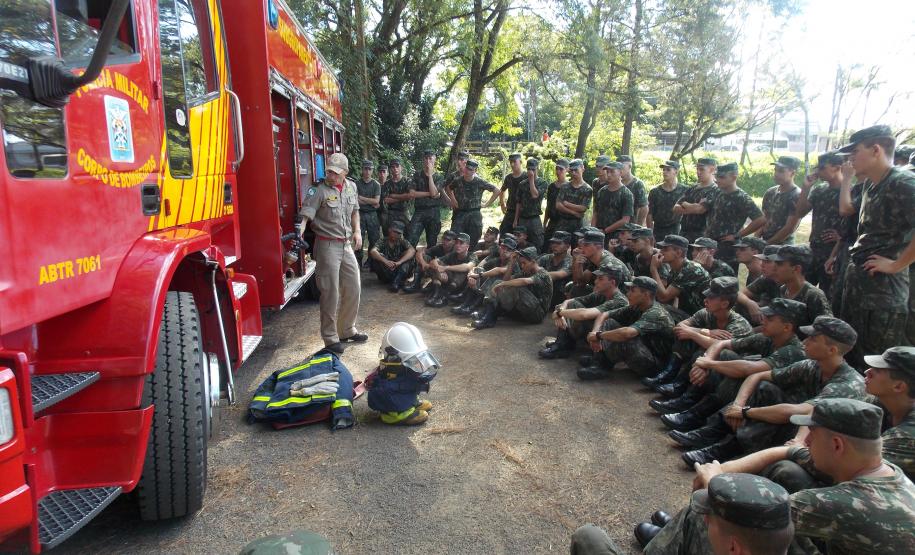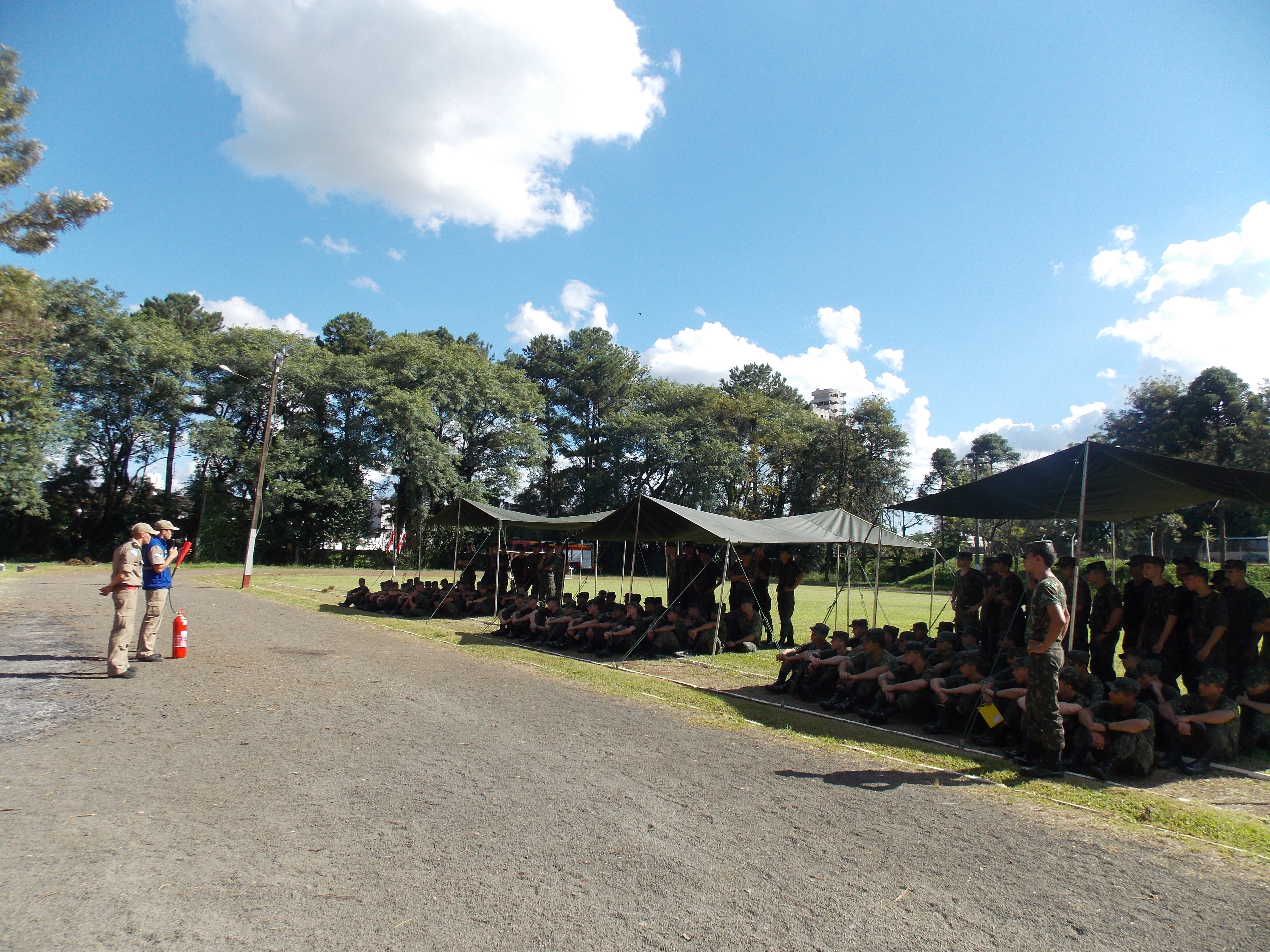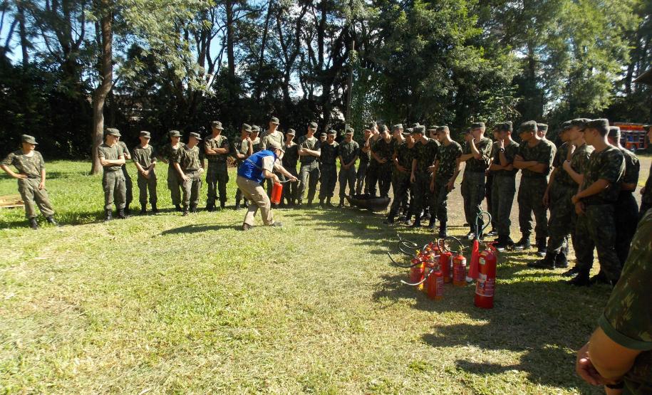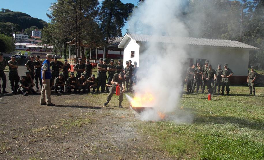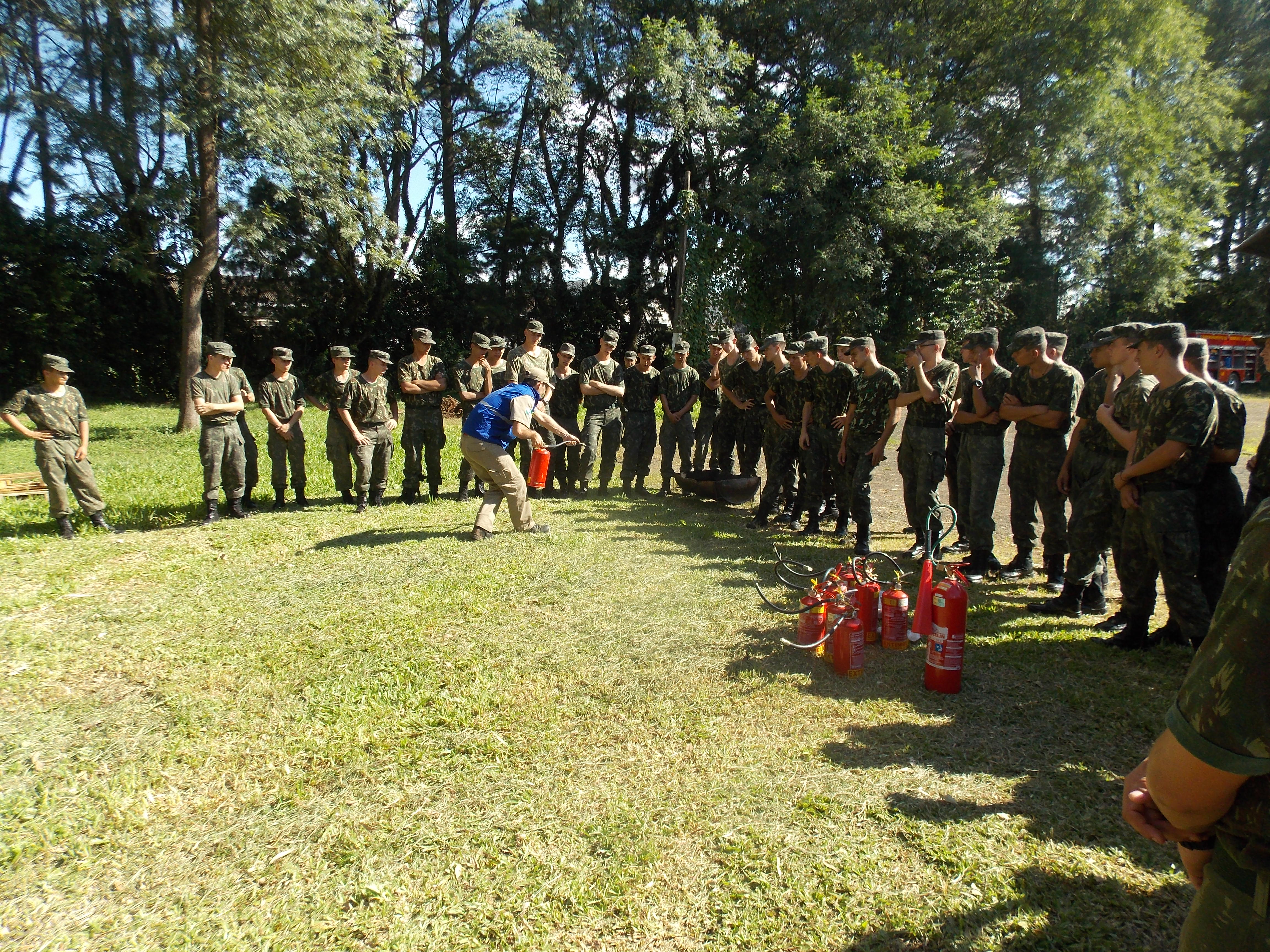 Os 112 Soldados 2ª Classe conheceram os materiais da viatura Auto Bomba Tanque Resgate, tiveram uma instrução teórica sobre o triângulo do fogo, métodos de extinção de incêndio (abafamento, resfriamento e retirada do material) e sobre as classes e capacidade extintora dos extintores.