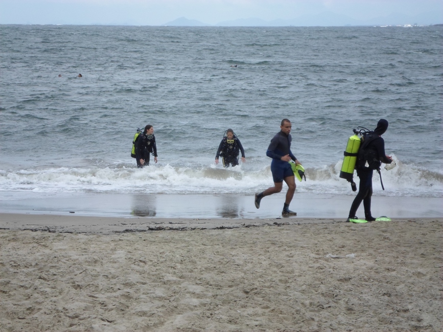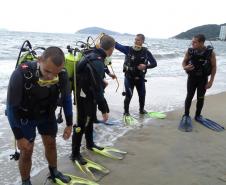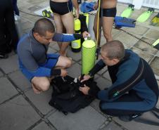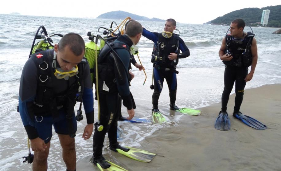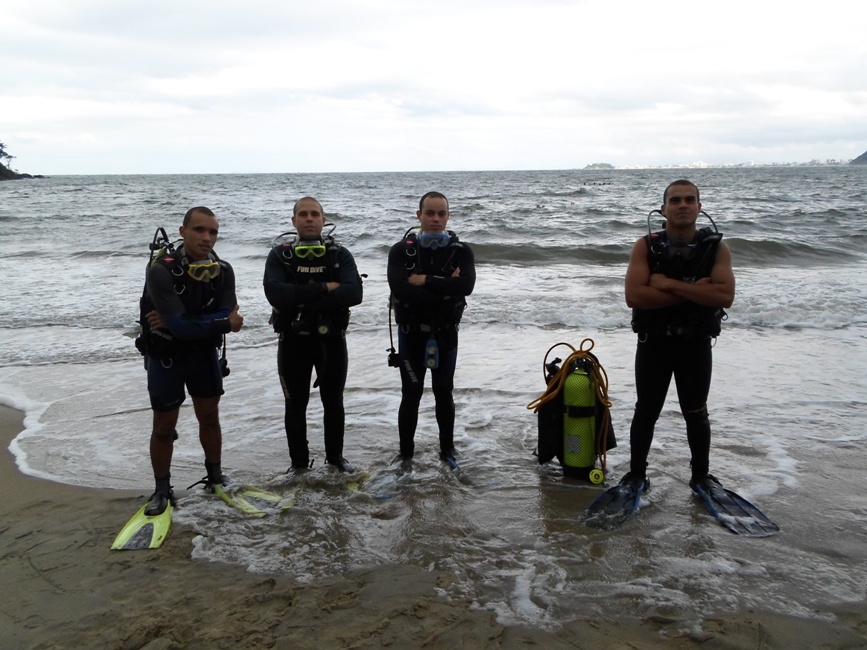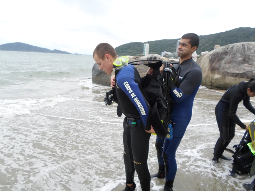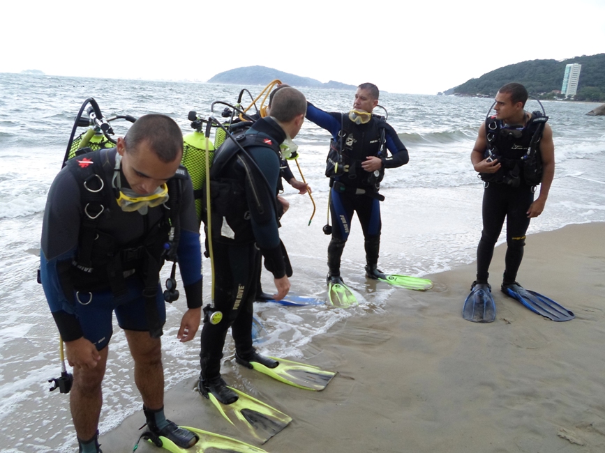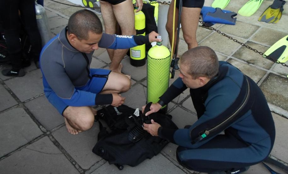 Os alunos prepararam com segurança, todos os equipamentos necessários para realização de um mergulho, acompanhados e supervisionados pelo instrutor, monitor e auxiliares. Logo em seguida iniciaram-se os mergulhos que foram realizados em dupla de alunos, onde o exercício consistia em mergulhar aproximadamente 3 metros e realizar deslocamento submerso por aproximadamente 20 metros.