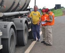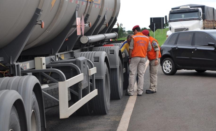 O Comando do 4º Subgrupamento de Bombeiros Independente, em parceria com a 13ª 13ª Coordenadoria Regional de Defesa Civil promoveu no dia 14 deste mês uma fiscalização integrada do transporte rodoviário de produtos perigosos. A ação aconteceu no Posto da Polícia Rodoviária Federal, localizado na BR 376, Km 247.