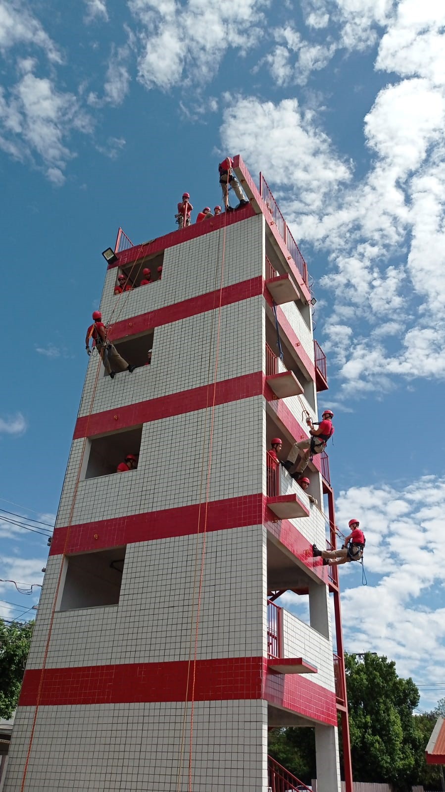 A torre de treinamento possui 16 metros de altura e conta com uma estrutura em alvenaria que é equivalente a um prédio de cinco andares, sendo utilizada para treinar salvamento e resgate em edifícios e no combate a incêndios em prédios. Os exercícios práticos estão sendo realizados sob a supervisão de instrutores extremamente capacitados, utilizando equipamentos específicos, a fim de garantir toda a segurança durante a execução das atividades.