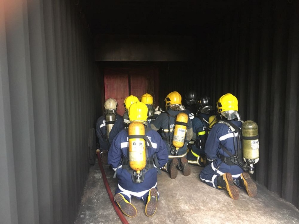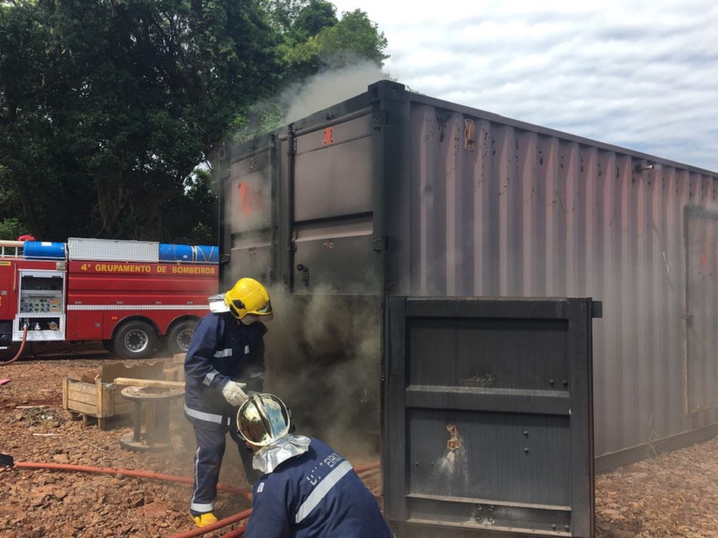 O contêiner é ideal para instruções práticas de Combate a Incêndio, pois assim é possível visualizar o comportamento do fogo em local fechado e com caloria extrema.