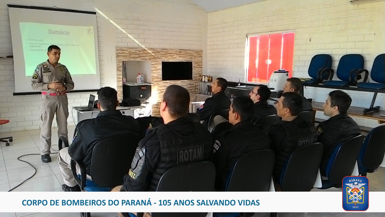 Segundo o Sd. Julio, um dos organizadores da instrução, um cão de busca e resgate para ser empregado em uma situação real passa por diversas fases, desde a seleção de filhotes, onde se busca observar a aptidão do cão para o trabalho até a sua certificação de pronto emprego que no mínimo leva 18 meses de treinos diários. Ainda segundo o Sd. Julio não existe uma raça especifica mas as mais usadas no Corpo de Bombeiros do Paraná são as raças: labrador, pastor alemão, golden retriever e pastor malinois. Os cães precisam de características específicas como concentração, socialização, coragem entre outras. Em Pato Branco atualmente dois cães em processo de treinamento, o labrador Hulck do condutor Sd. Julio e o malinois Brida do Sd. Alves.