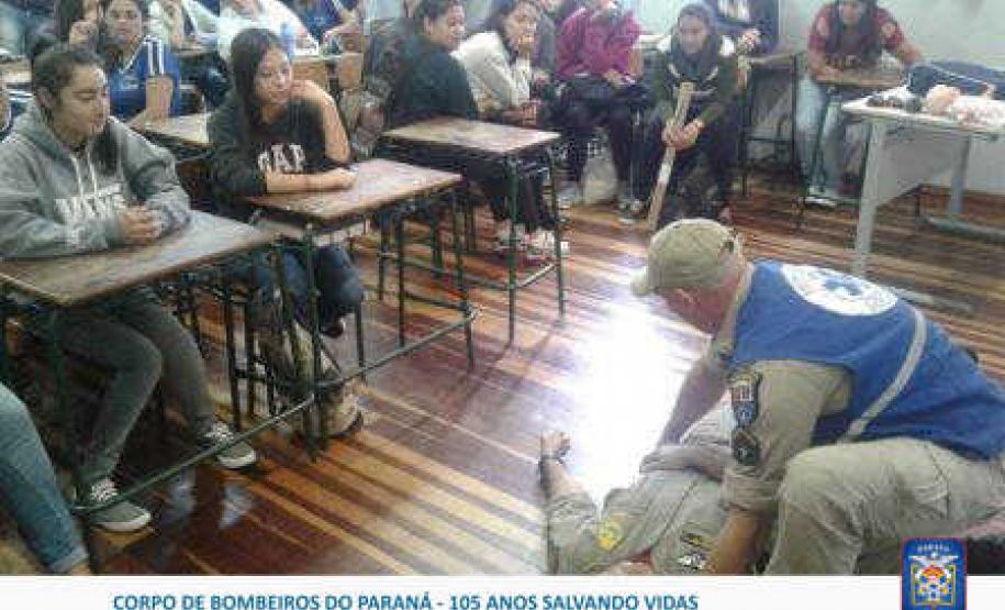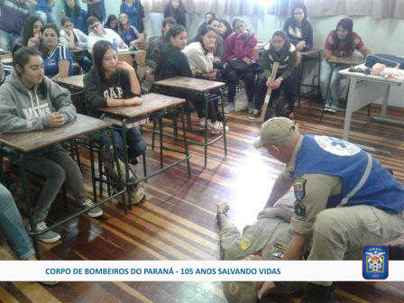 Na última segunda-feira (17) a unidade de Palmas representado pelos soldados Jonas, Winters e Trento ministraram a palestra sobre primeiros socorros ao alunos do magistério do Colégio Estadual Dom Carlos em Palmas.