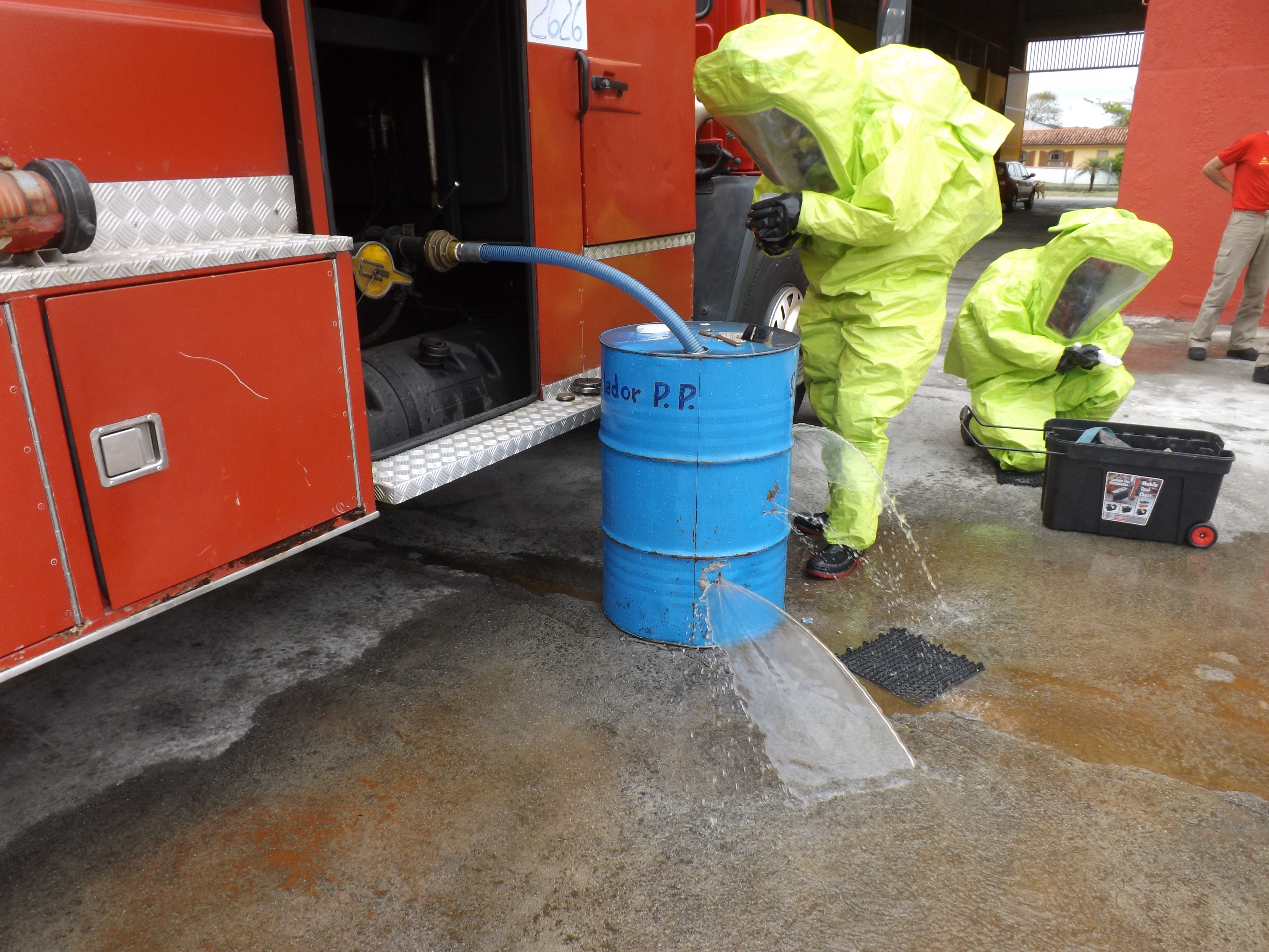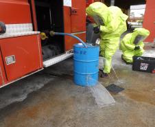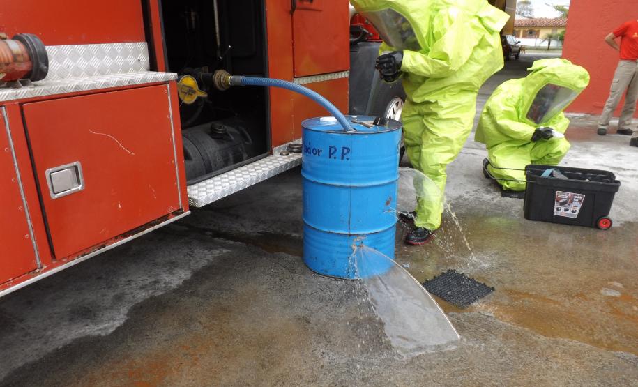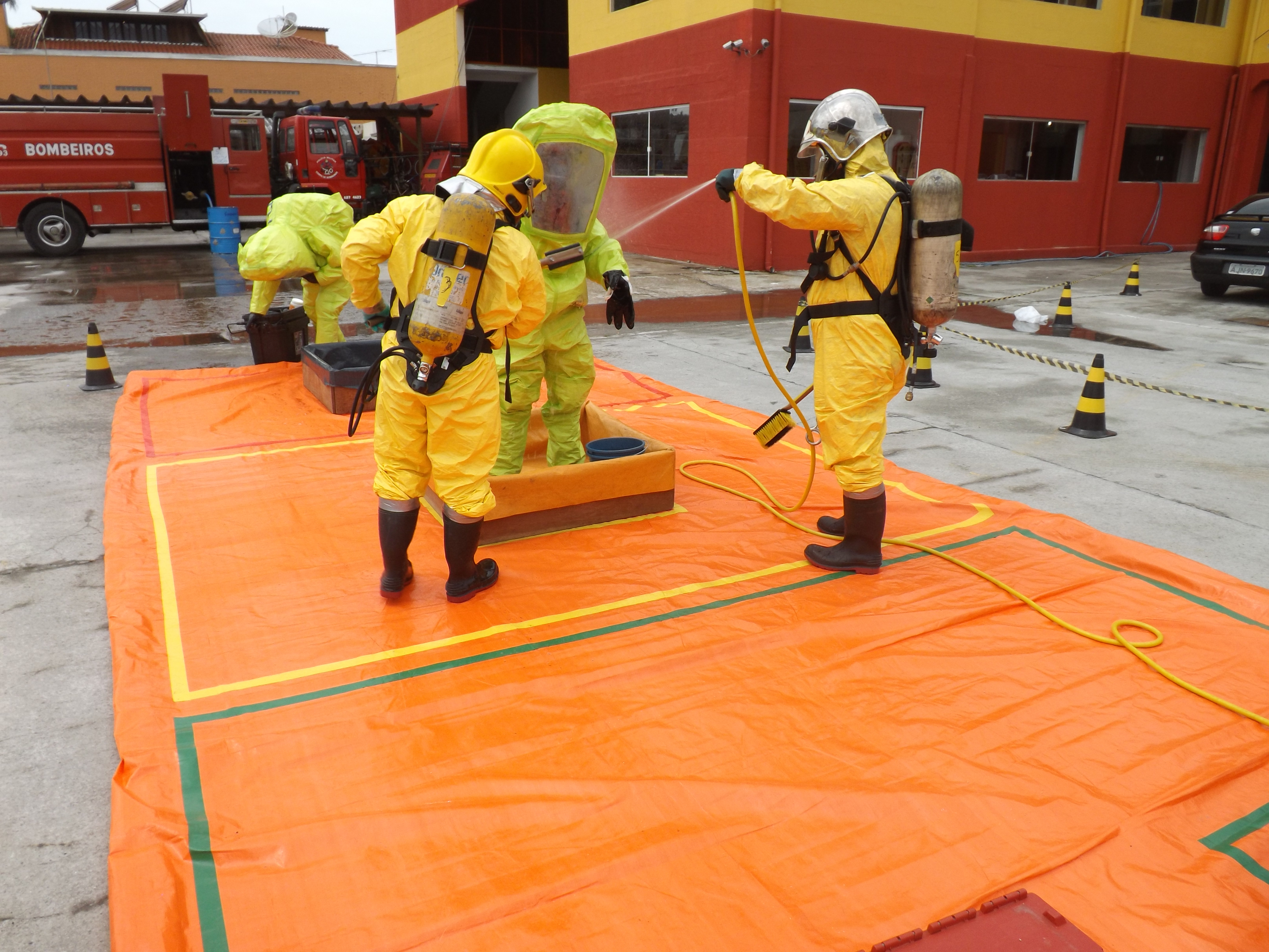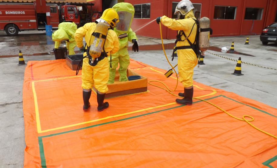 As Equipes do Corpo de Bombeiros e os profissionais de segurança pública que participaram da instrução, além das aulas teóricas, realizaram simulados de atendimento a vazamentos e também procedimentos de descontaminação de vítimas e materiais, com o estabelecimento do Corredor de descontaminação/redução, dentre outras técnicas de atendimento a emergências.