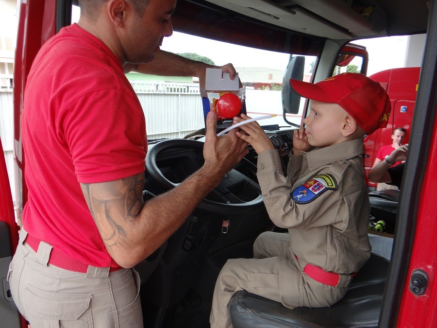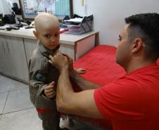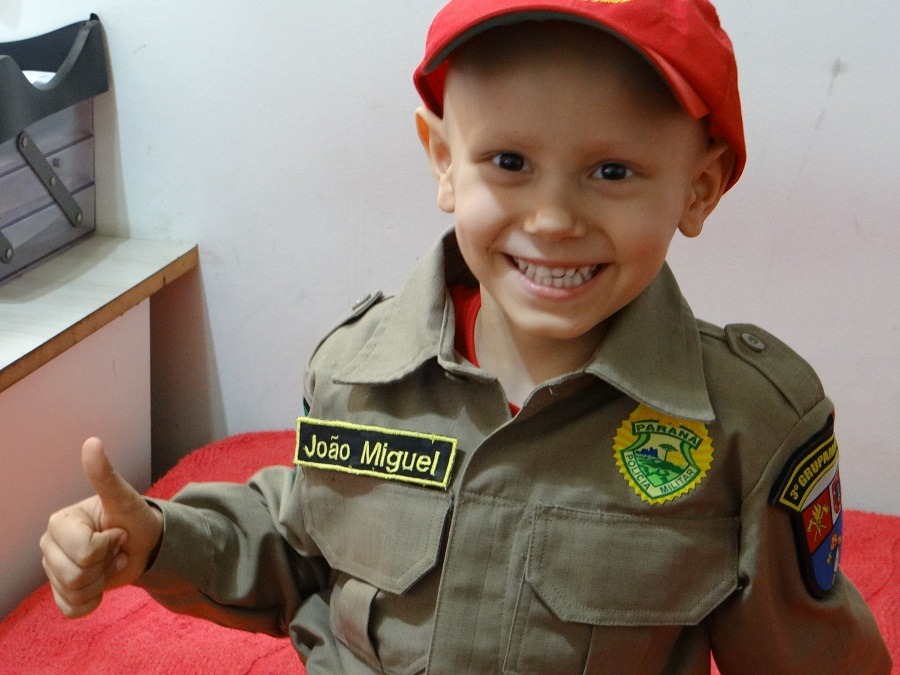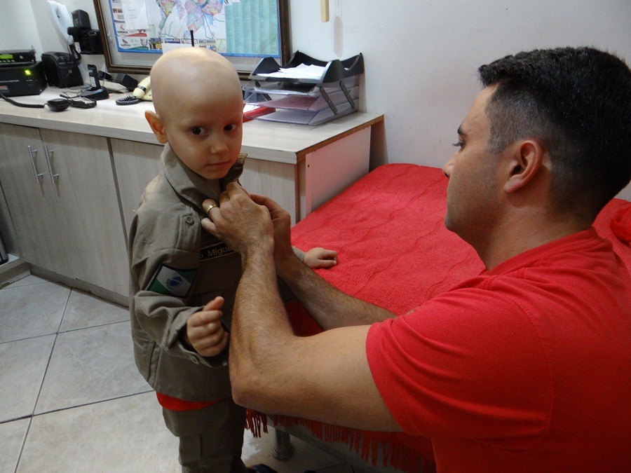 Na tarde da última sexta-feira (19), o Corpo de Bombeiros de Santo Antônio da Platina, pertencente ao 3º Grupamento de Bombeiros, sede Londrina, recebeu a vista muito especial de um menino chamado João Miguel, que tem o sonho de se tornar um bombeiro. Ele é um garoto de 4 anos de idade, que ao completar dois anos e oito meses foi diagnosticado com tumor na bexiga e após passar por uma cirurgia para retirada do tumor, iniciou tratamento quimioterápico semanalmente. Durante os seus deslocamentos ao Hospital de Câncer de Londrina/PR, o pequeno comentou sobre o sonho em ganhar uma farda da Corporação, o que comoveu funcionários da Secretaria da Saúde do Município.