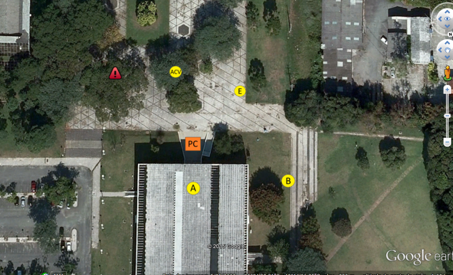Ícones disponíveis: PC (Posto de Comando), ACV (Área de Concentração de Vítimas), E (Área de Espera), H1 (Heliponto), B (Base), A (Acampamento).