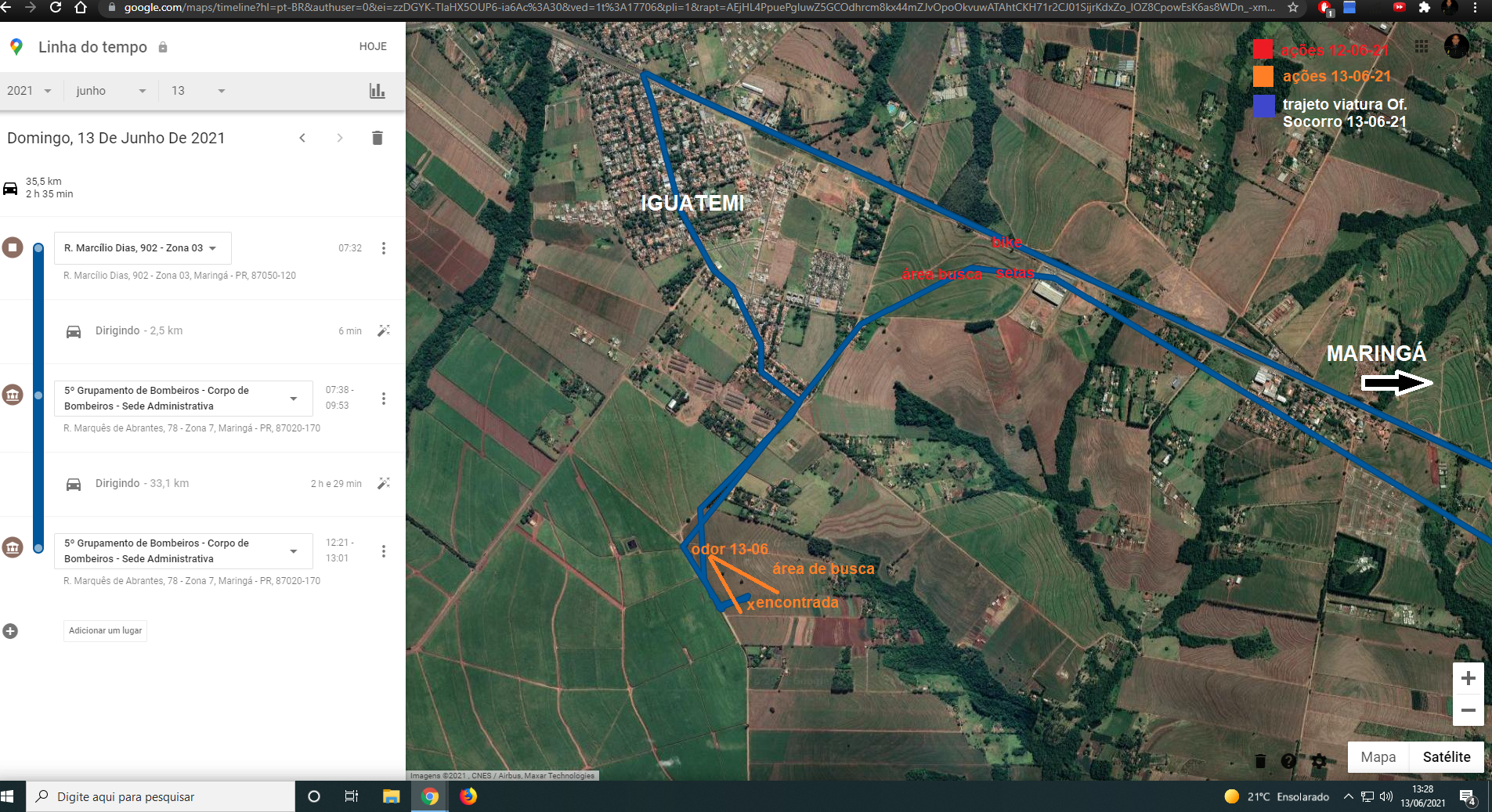 Quartel Central do 5ºGB (13/06/2021) - Em torno das 23h deste sábado (12), o Corpo de Bombeiros em Maringá foi acionado para uma busca terrestre em Iguatemi de uma mulher, 33, que teria saído de sua casa pela manhã naquele distrito de Maringá, acompanhada de sua filha, 5, e não mais retornou. De acordo com as informações dos familiares, gravações de câmera de segurança de um comércio mostram-nas às 11h30min nas imediações da Av. Vereador Antonio Bortolotto cruzamento com Estrada Colombo.