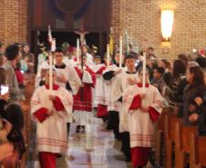Participaram da celebração, cantando, tocando, lendo, interagindo com os coroinhas e acólitos e atuando no ofertório vivo oficiais e praças da Polícia Militar e do Corpo de Bombeiros, além dos cadetes do Curso de Formação de Oficiais Bombeiros Militares.