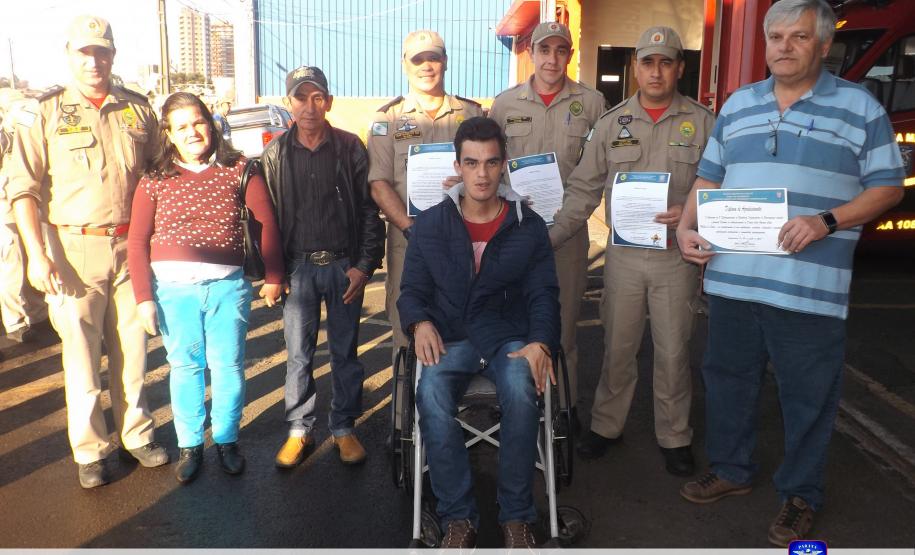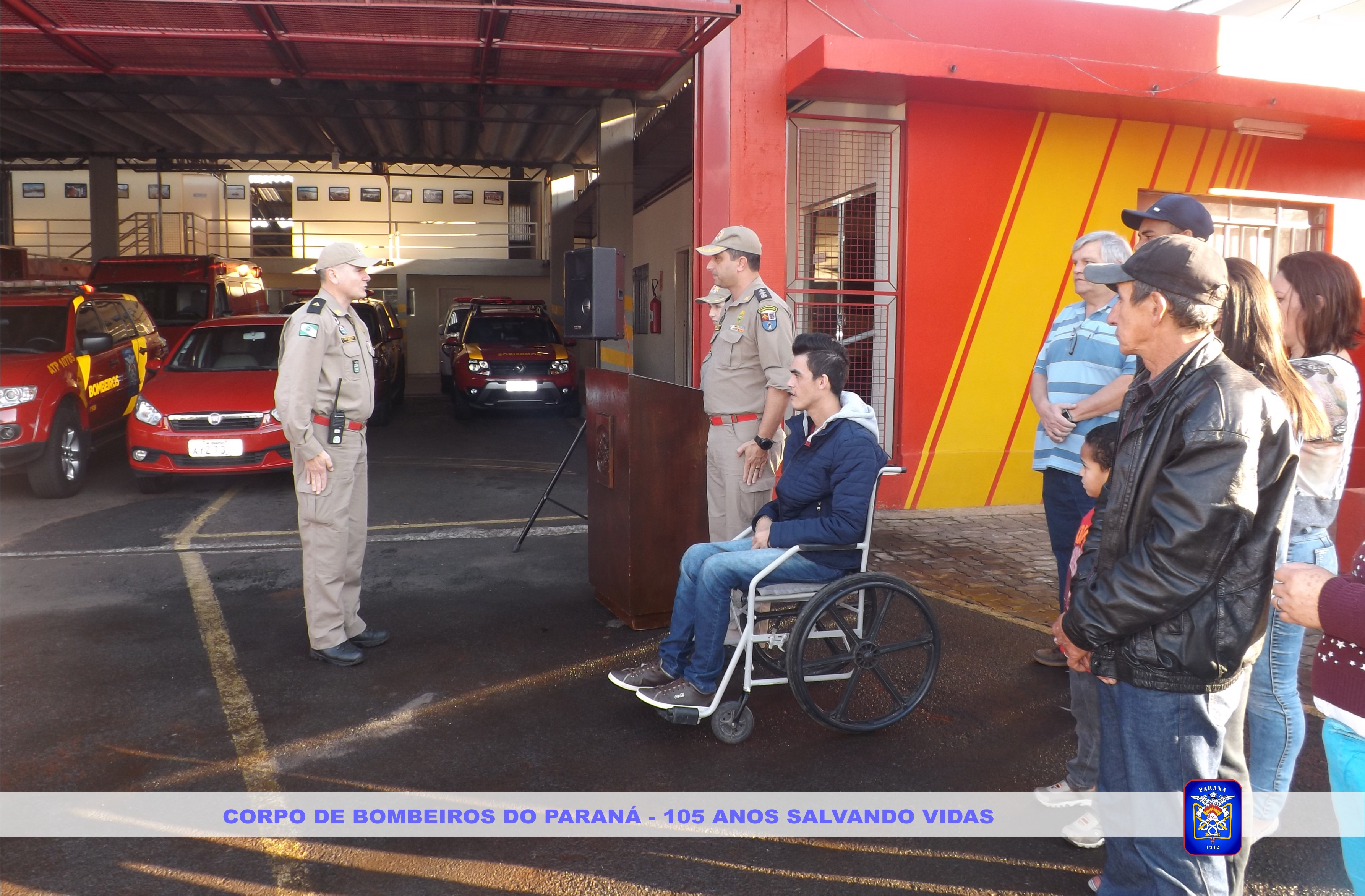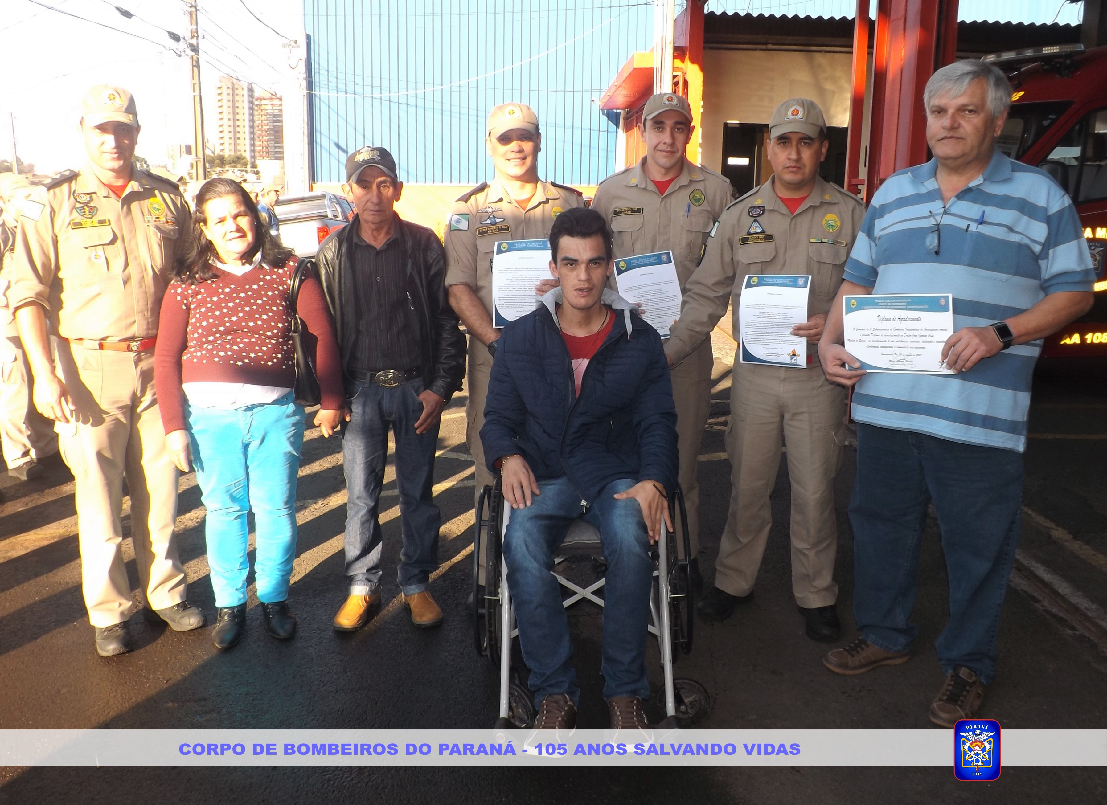 Na manhã do dia 29 de agosto de 2017 os Bombeiros Militares Subtenente Elcio, Cabo Odair, Cabo Ricardo, Soldado Chami e o Doutor João Guerino Cato médico do SAMU foram homenageados por um cidadão de Guarapuava que sobreviveu a um grave acidente de trânsito.