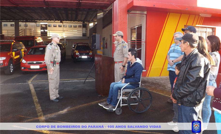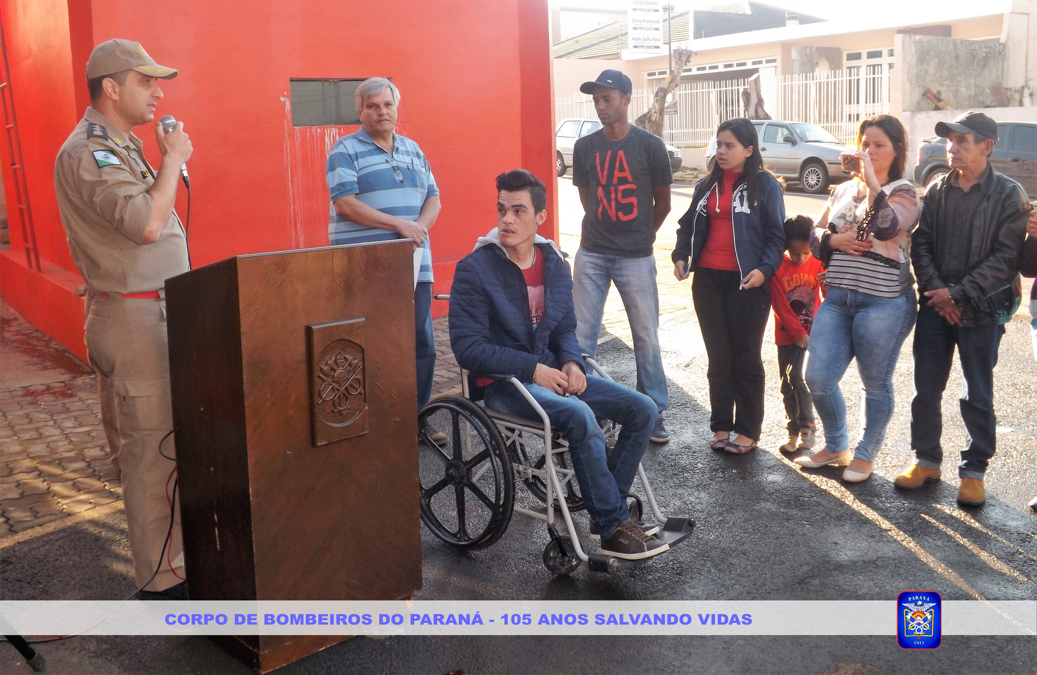 Morador de Guarapuava atendido pelo Corpo de Bombeiros presta homenagem a equipe de socorro 30/08/2017 - 11:10