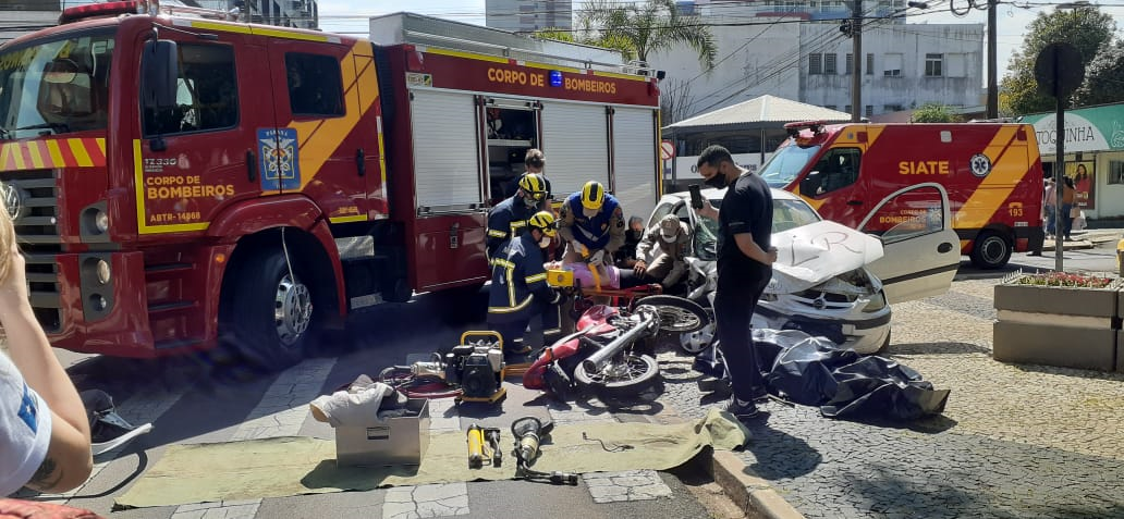 No Dia Nacional do Trânsito, militares do 12º Grupamento de Bombeiros realizam simulado no centro de Guarapuava-PR 25/09/2021 - 14:14