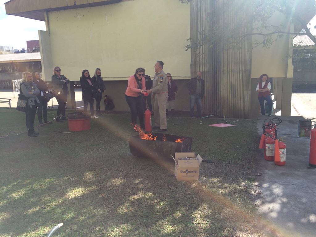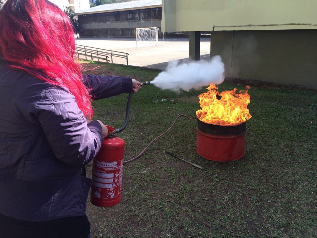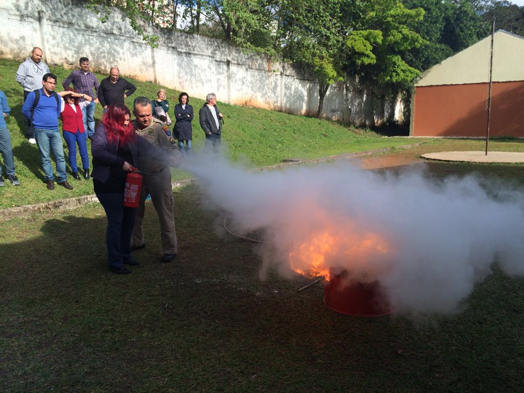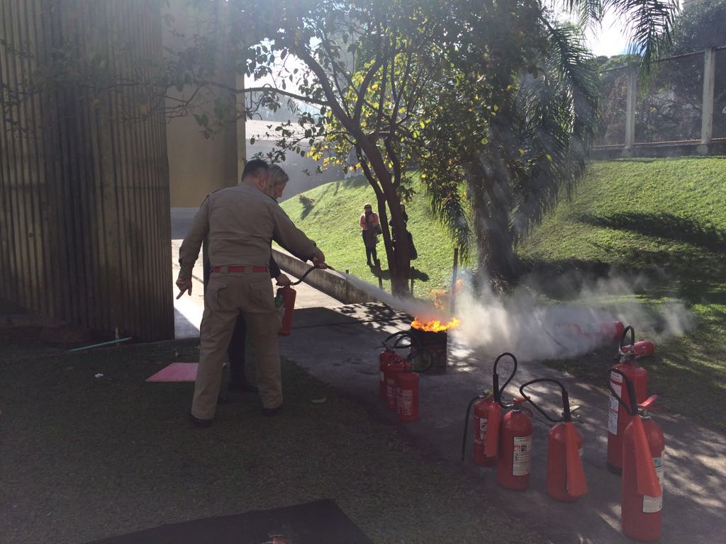 Houve ainda, treinamento prático para o combate a princípio de incêndios com a utilização de extintores, bem como explanação das medidas a tomar em caso de sinistro deste tipo.