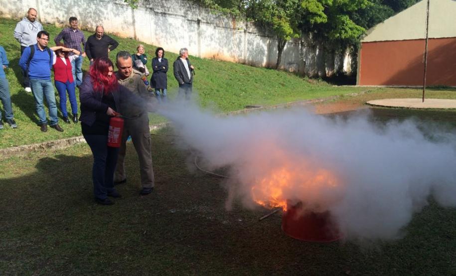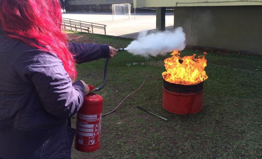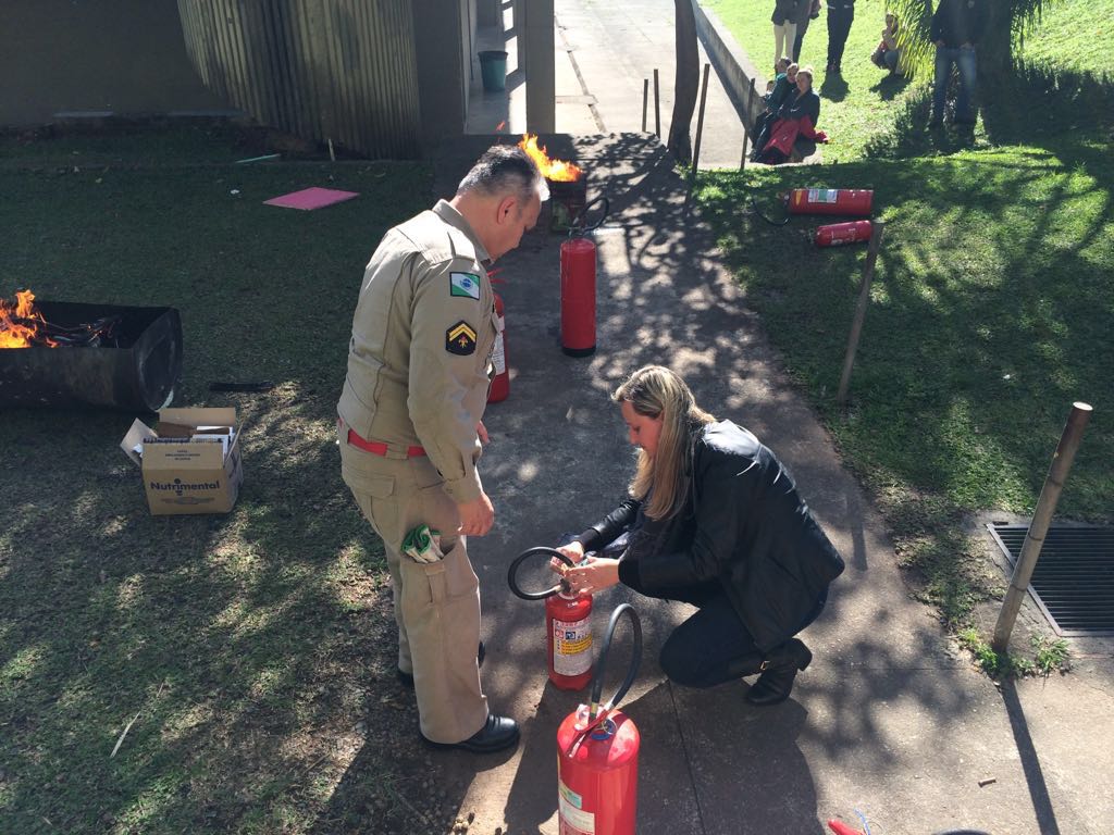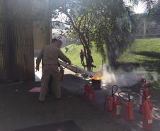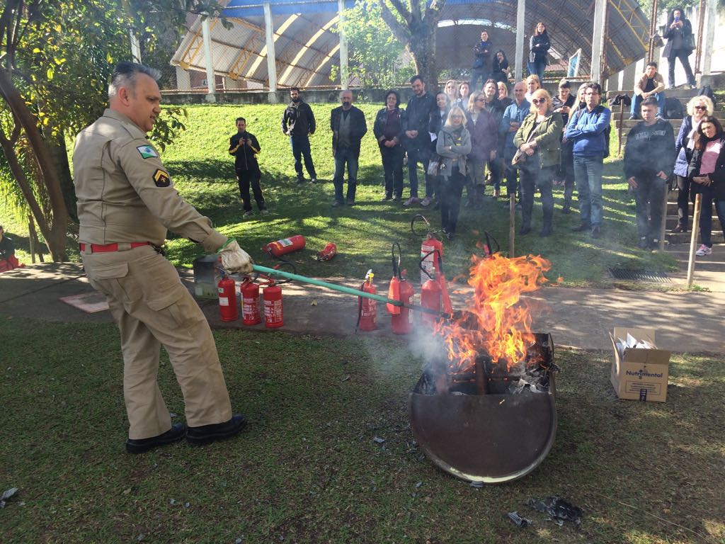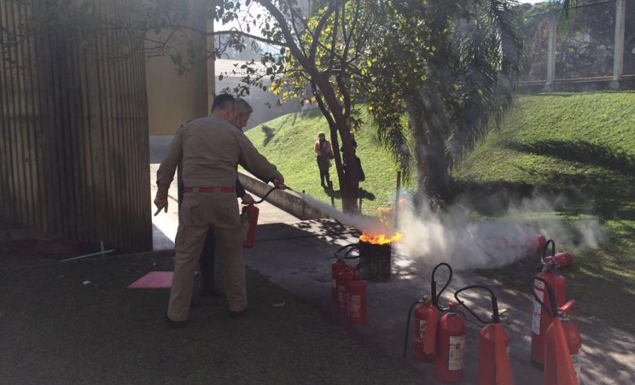 Houve ainda, treinamento prático para o combate a princípio de incêndios com a utilização de extintores, bem como explanação das medidas a tomar em caso de sinistro deste tipo.