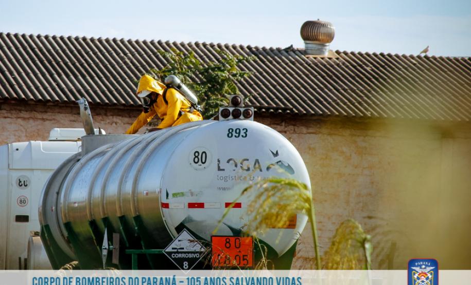 Após o isolamento do local conforme as exigências do manual ABIQUIM (Associação Brasileira da Indústria Química), foram acionadas todas as autoridades competentes e a empresa responsável pelo transporte.